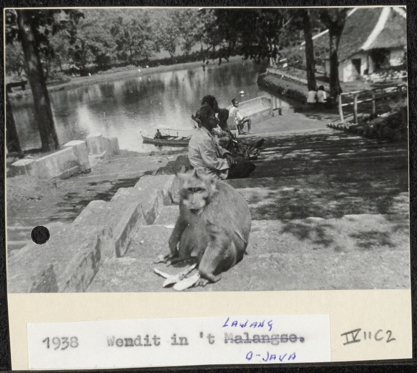 Trap aan een rivier, met op de voorgrond en aap