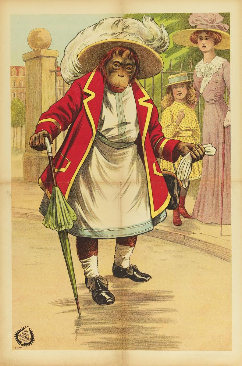 Mens-aap met klere aan. De Marce's Baboon-Circus, Da...