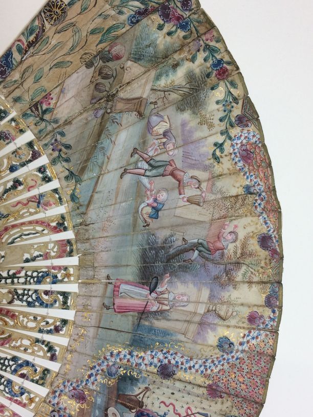 Waaier met beschilderd ivoren montuur en beschilderd...