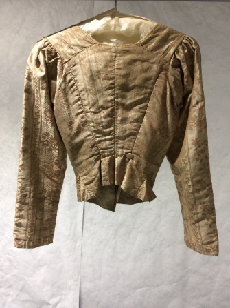 Baeitje of mannevest van bruine damast met witte blo...