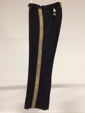 Donkerblauwe broek van laken, met gulpsluiting en ga...