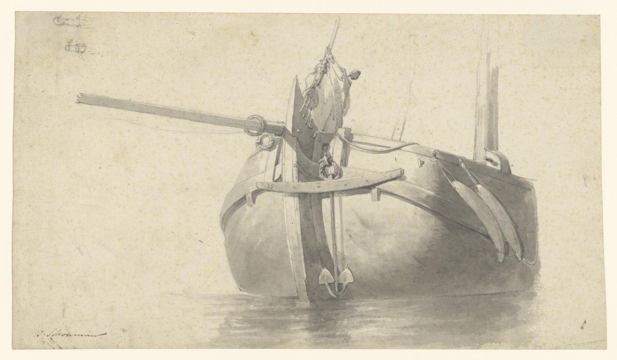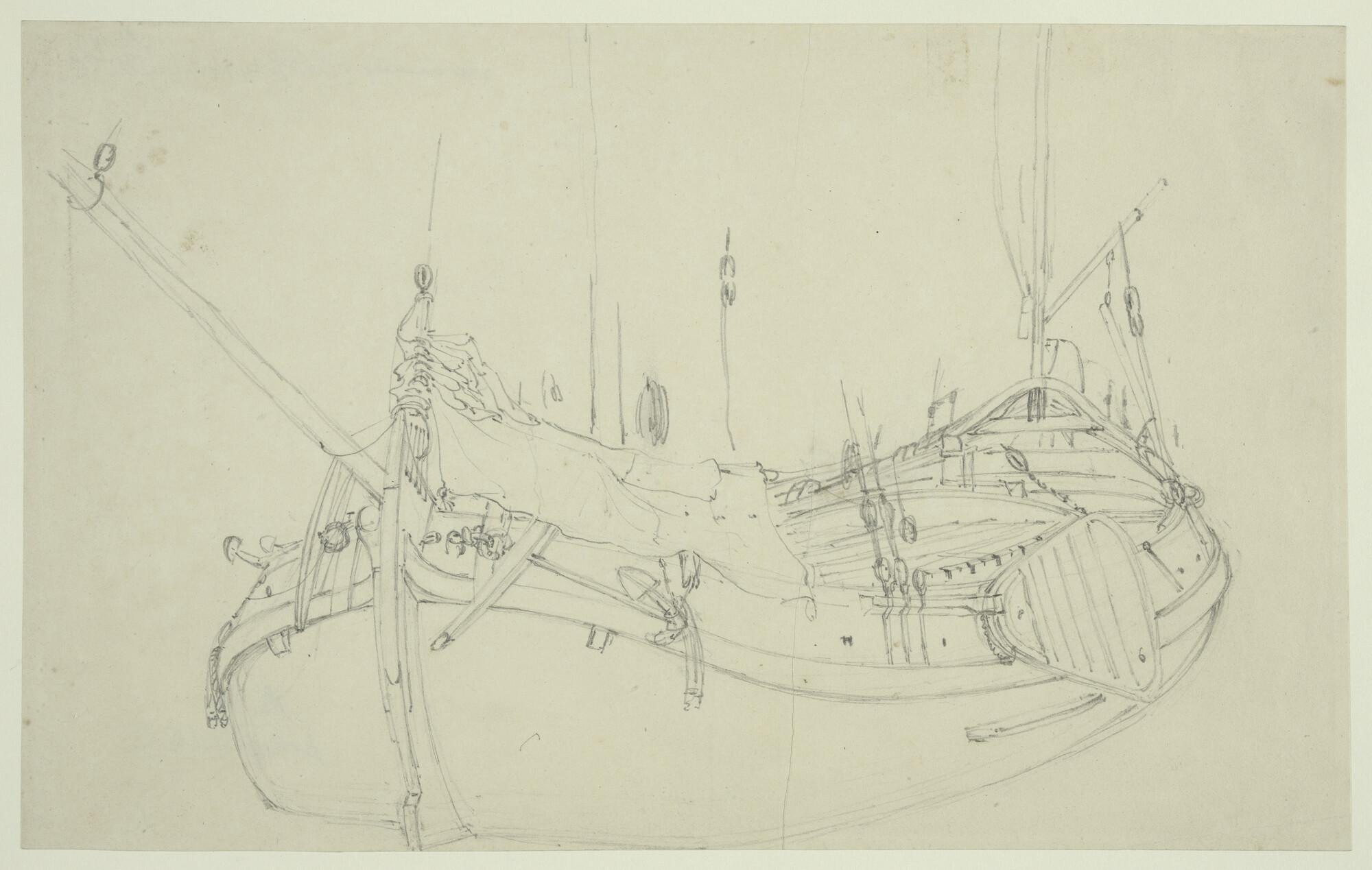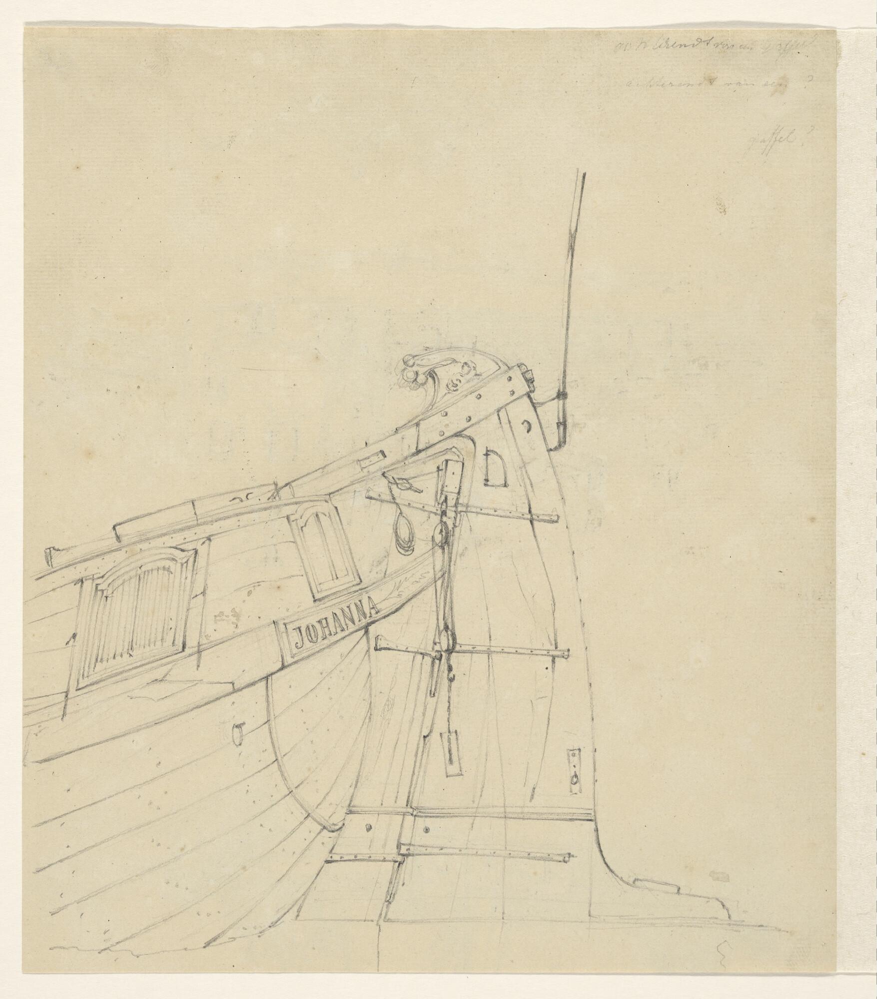 Tekening van het achterschip van een gaffelschip