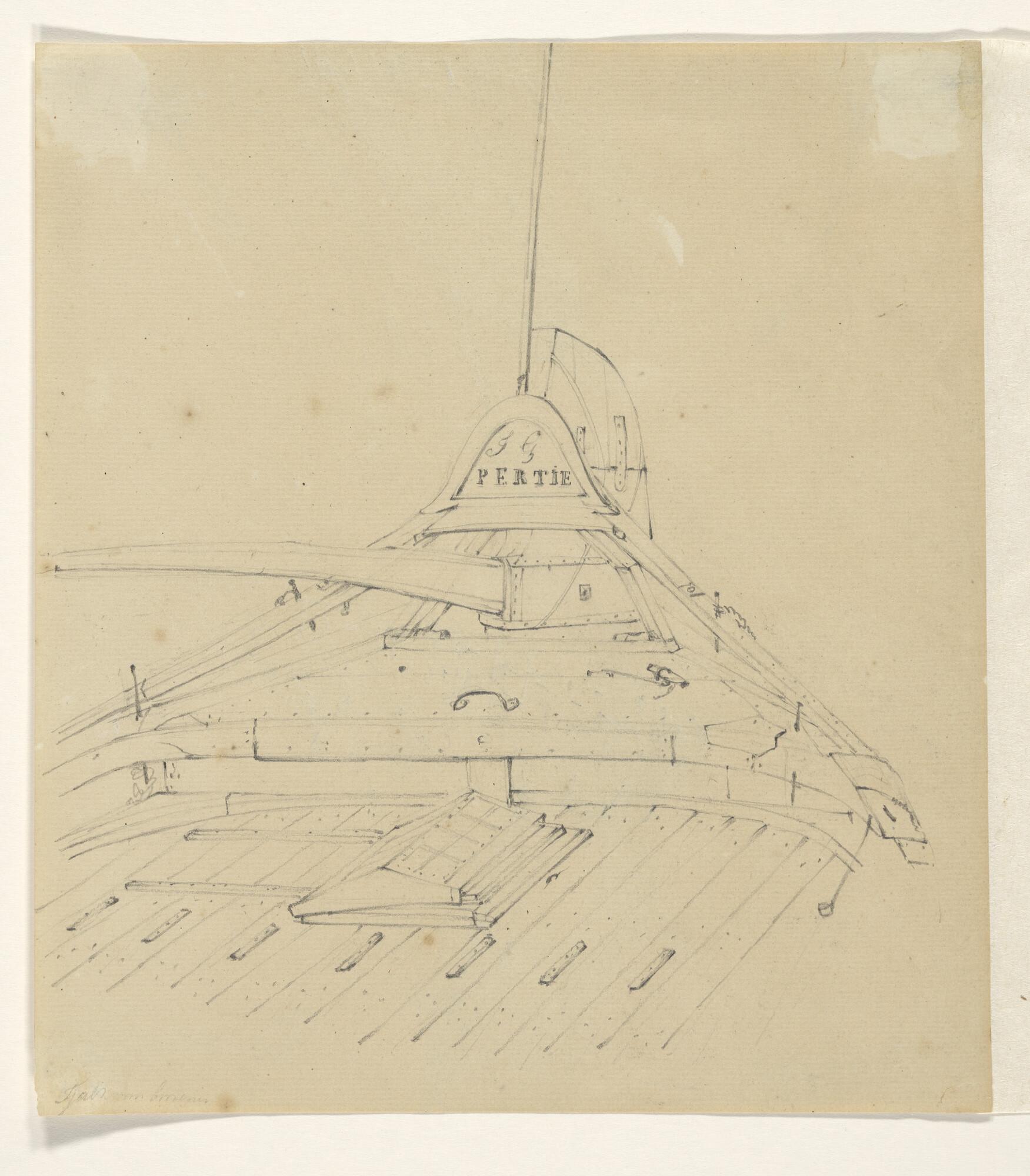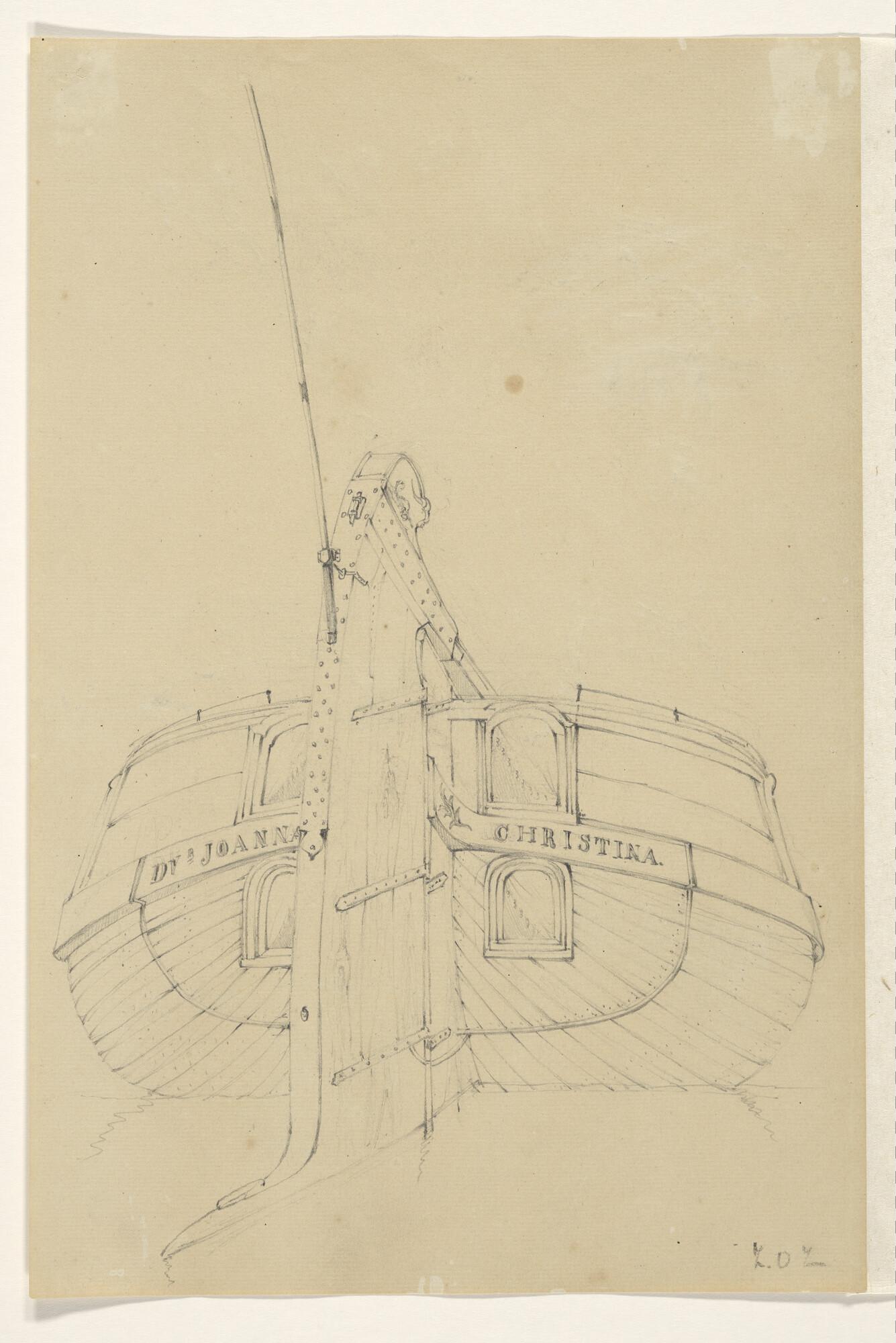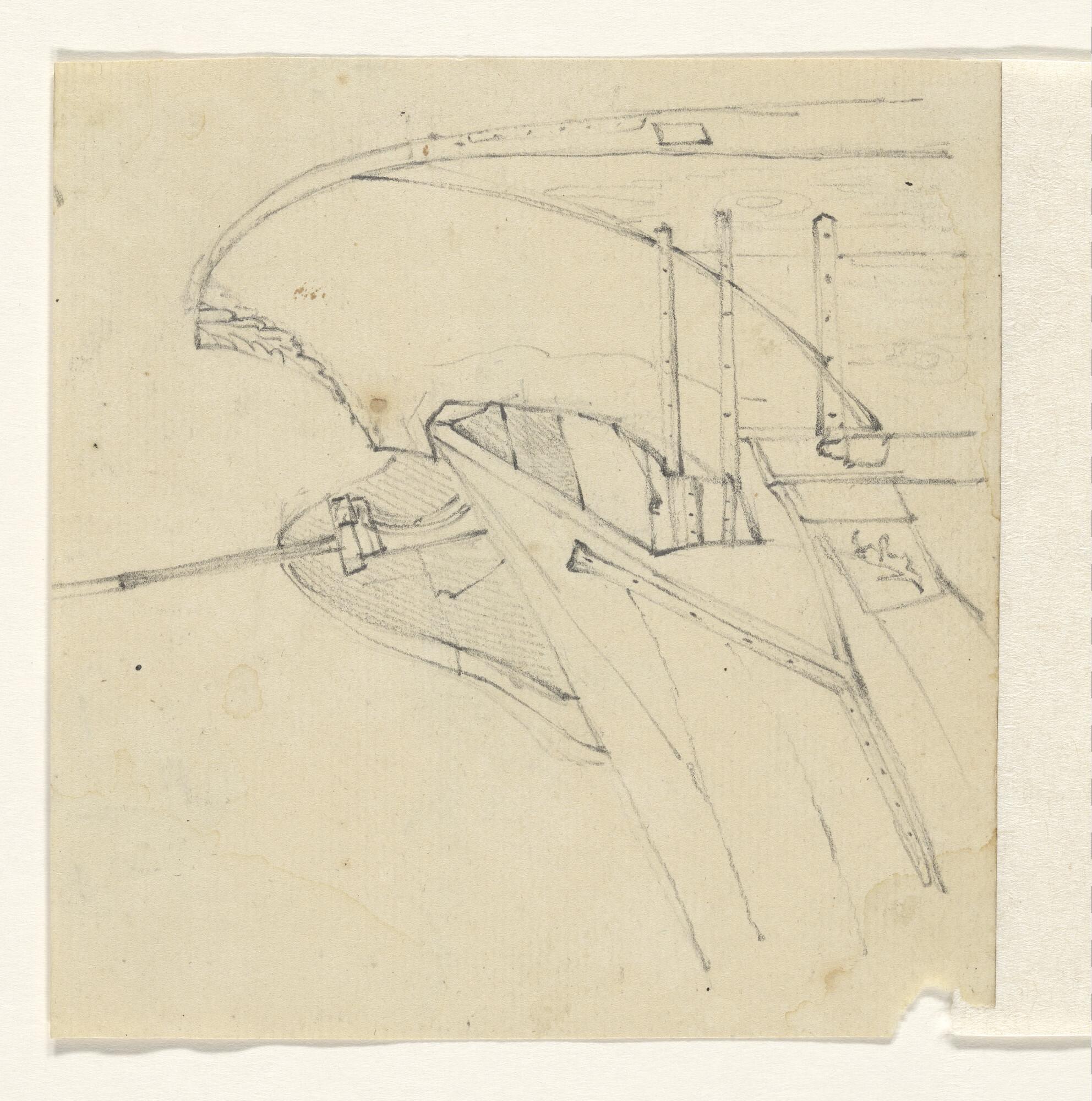 Tekening van het achterschip van een gaffelschip
