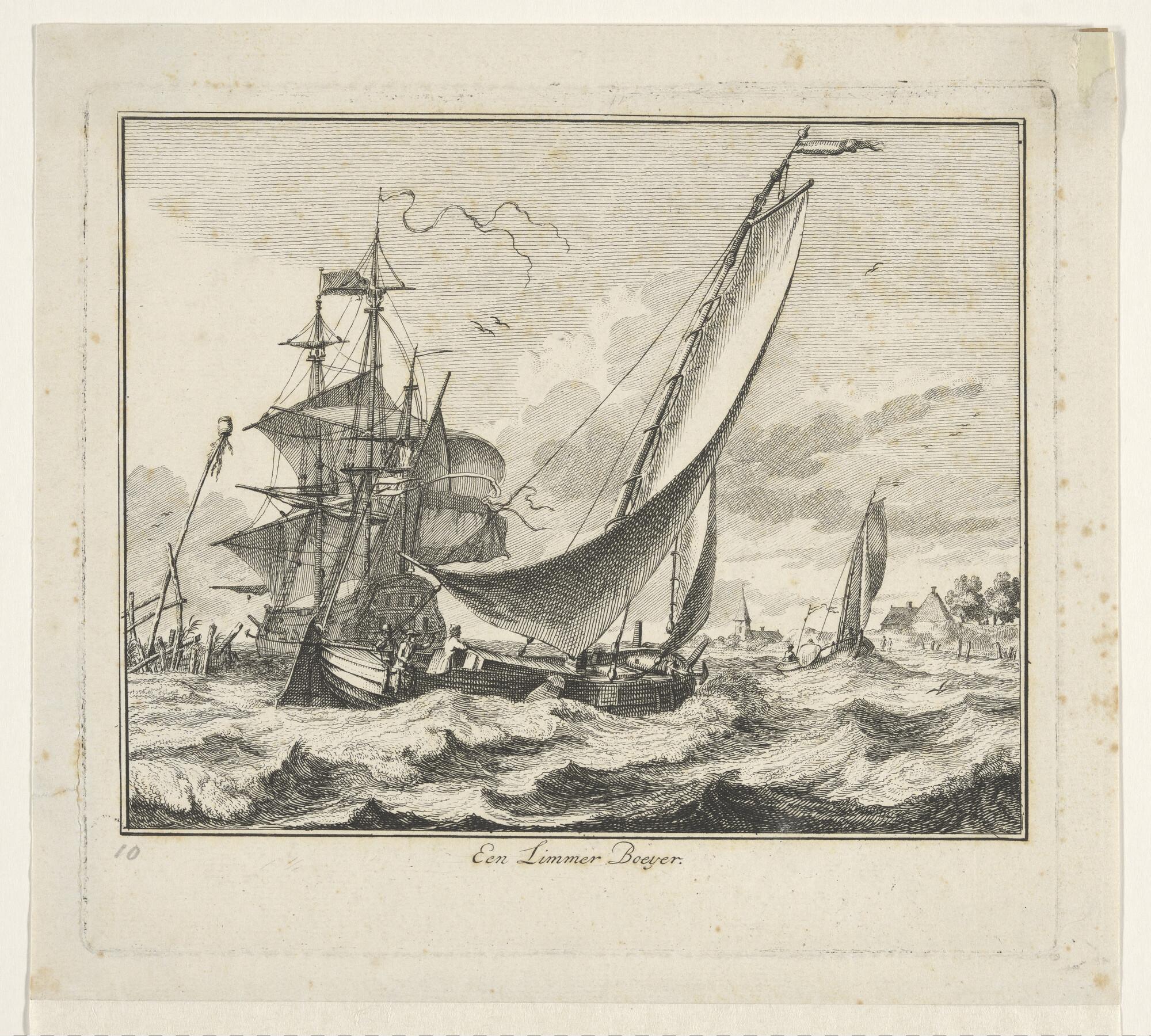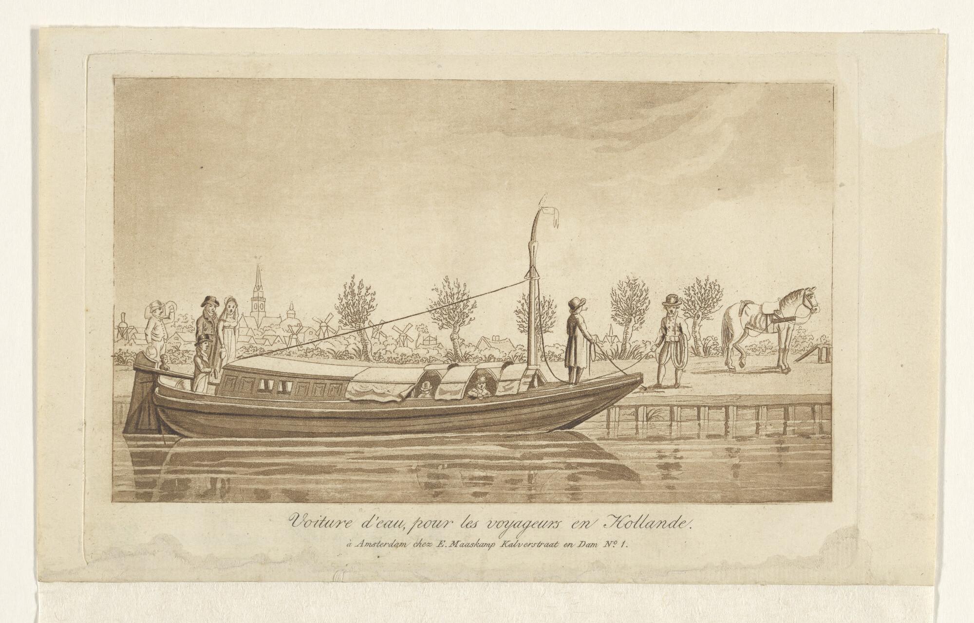 De statie van een tjalk en verso een groep huizen en...