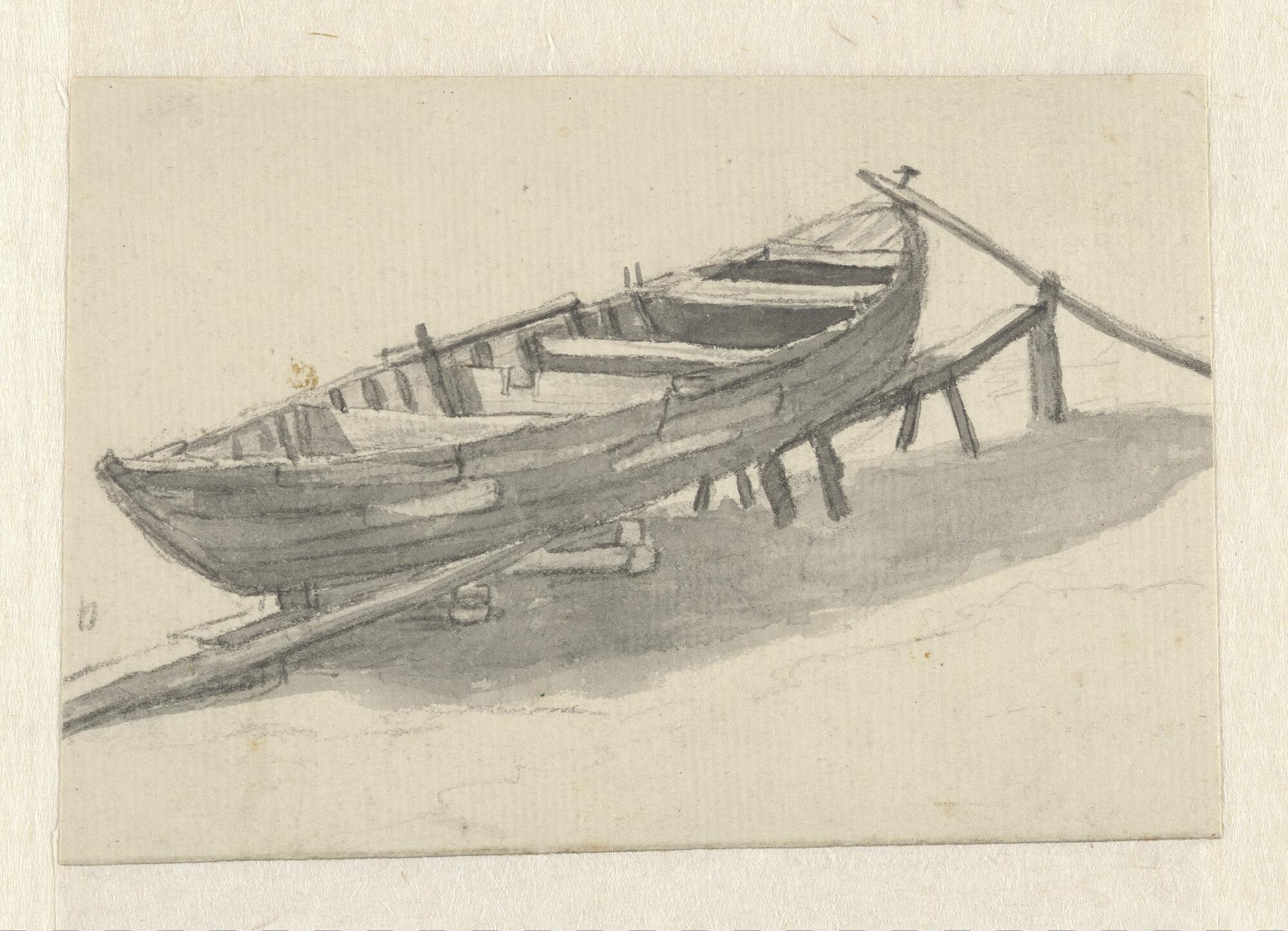 Een roeiboot op een sleephelling