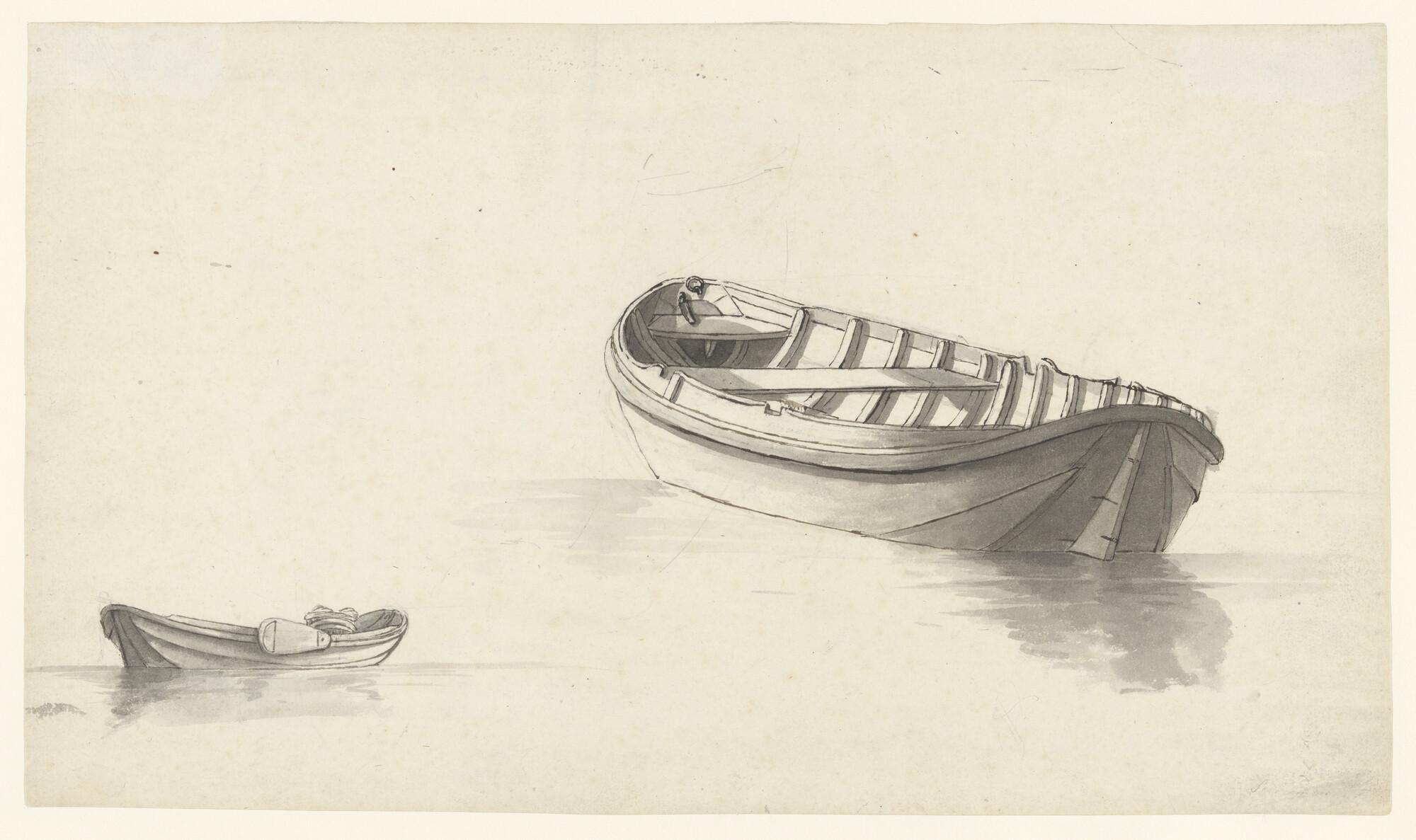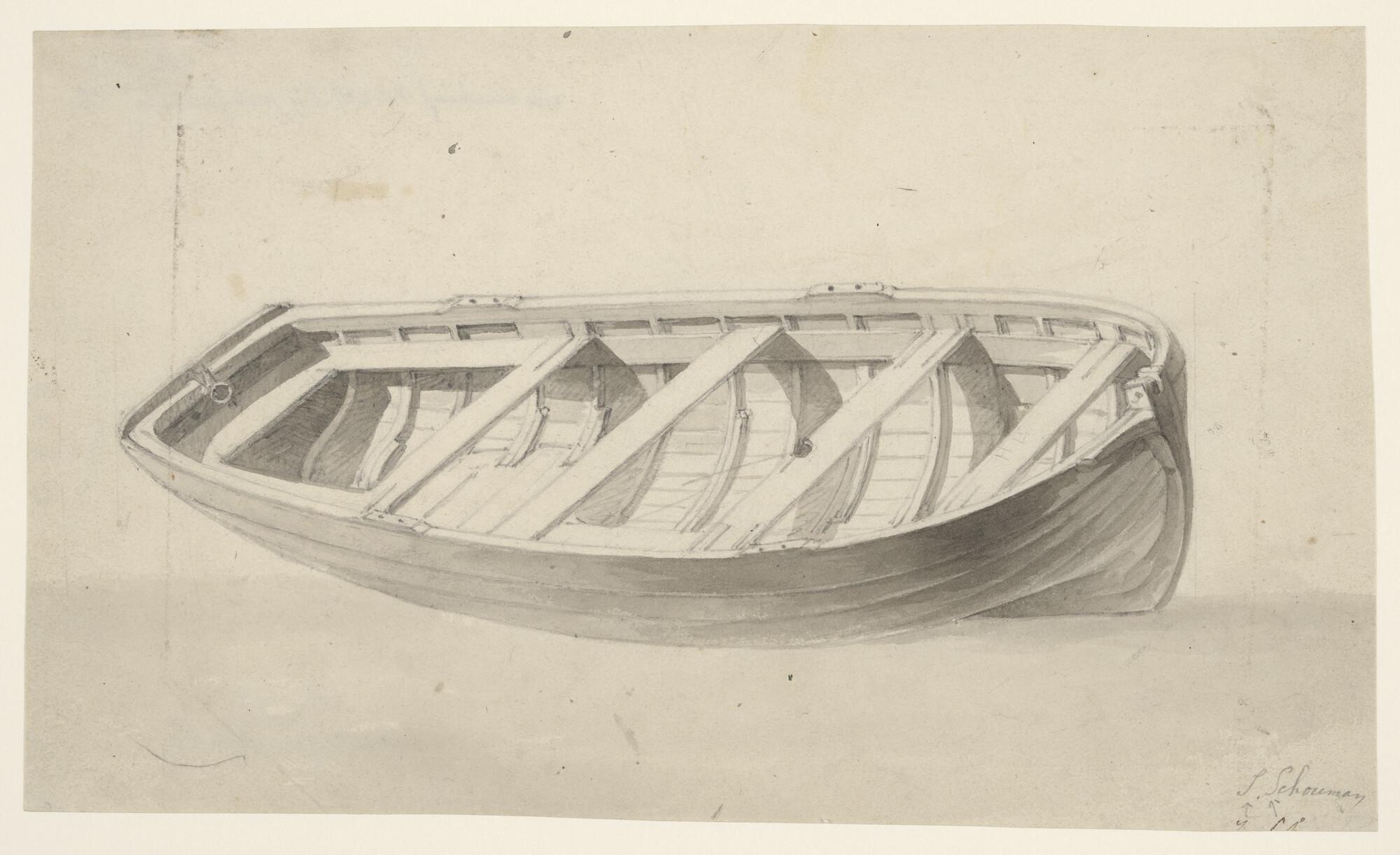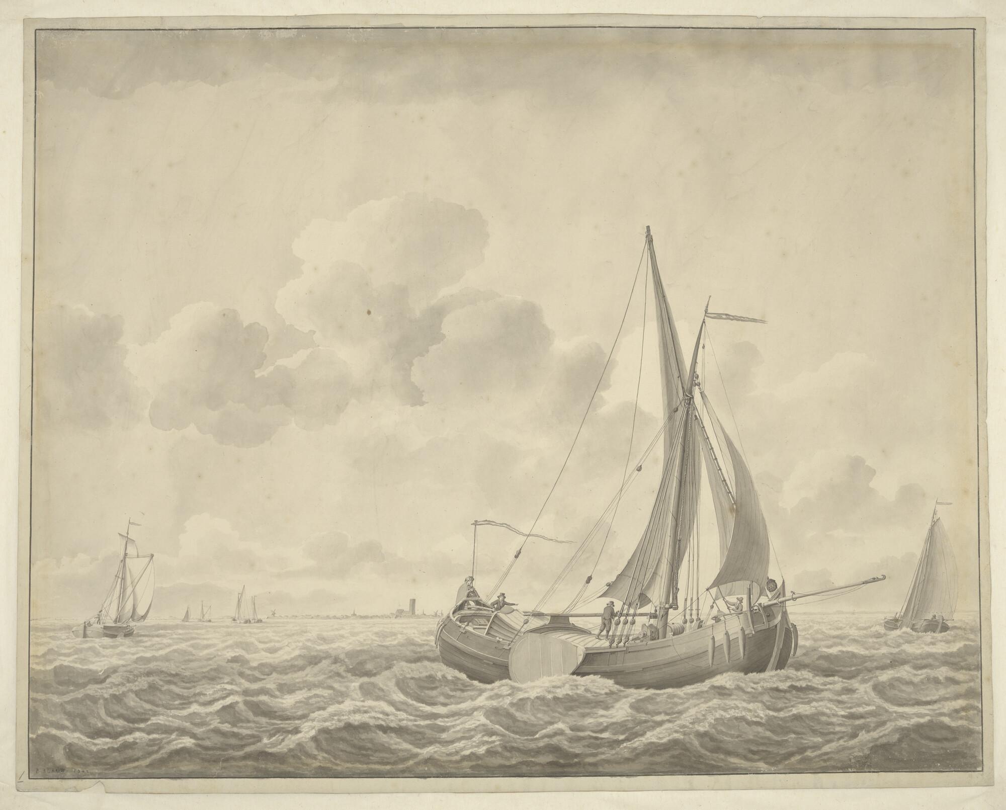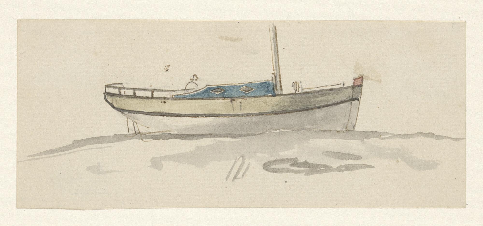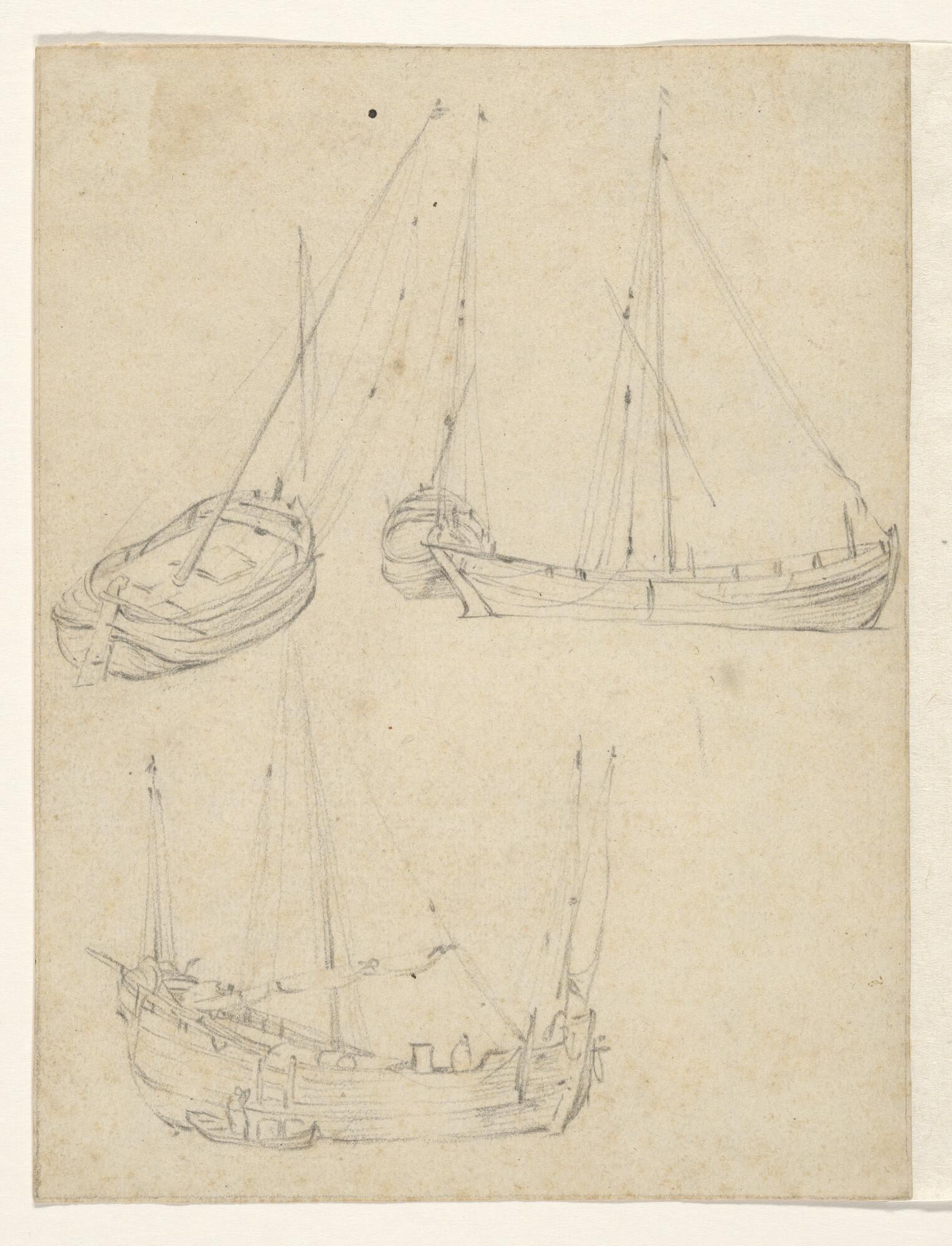 Schetsblad met vier kleine schepen, waaronder een ha...