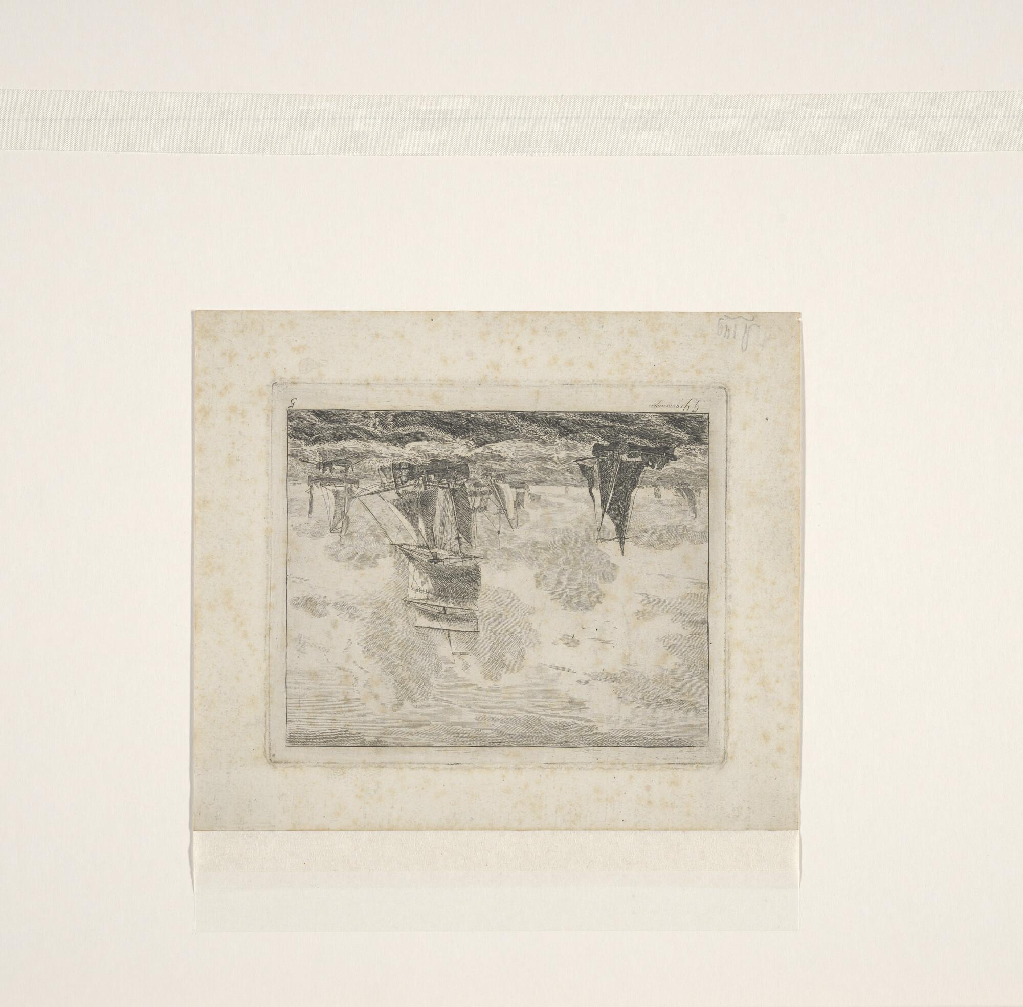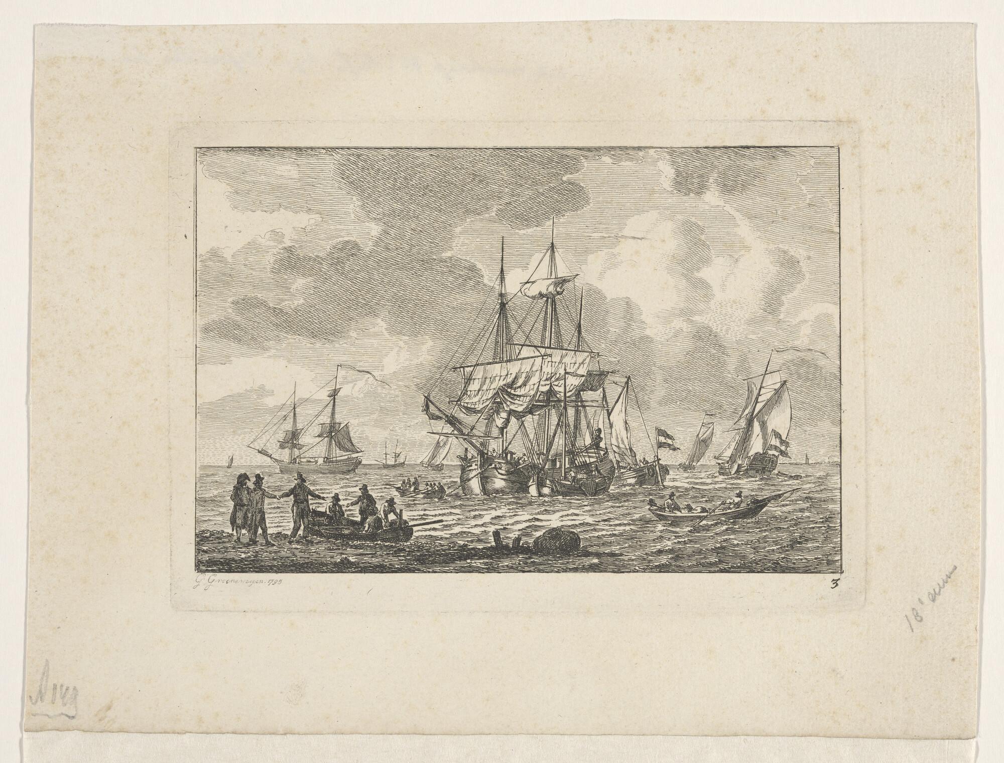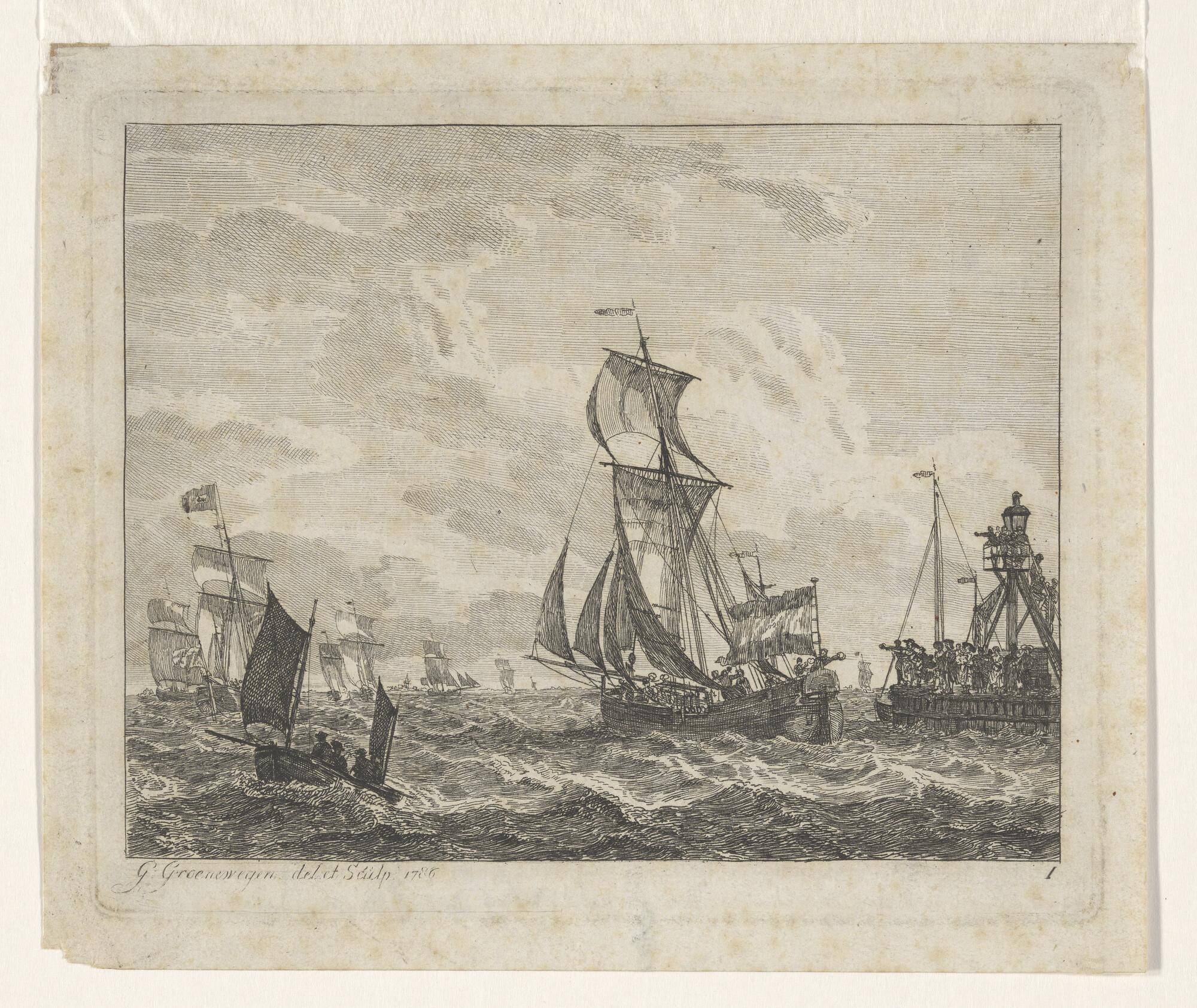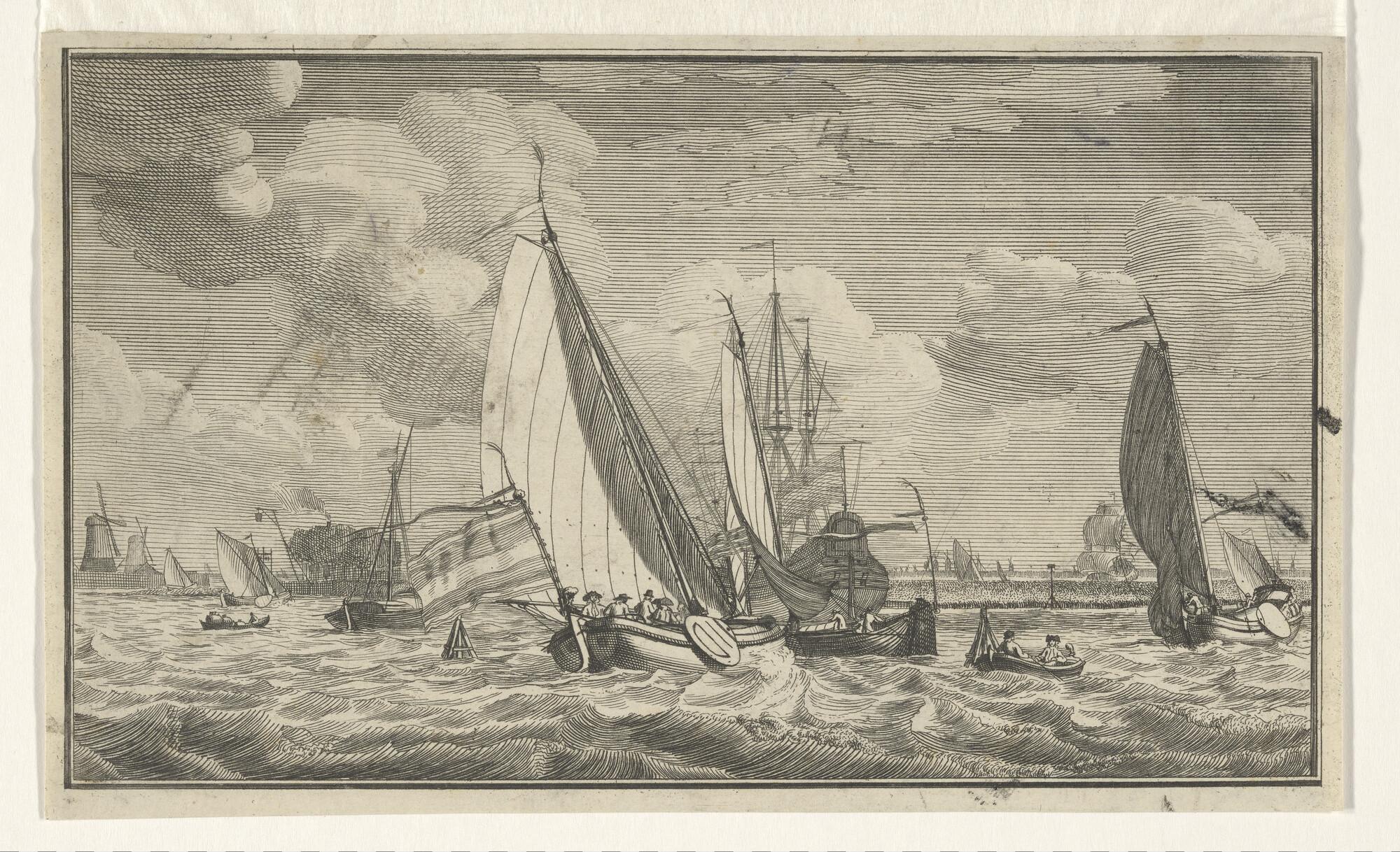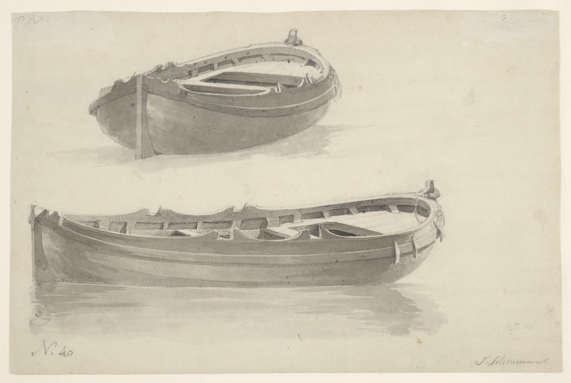 Schetsblad met vier kleine schepen, waaronder een ha...