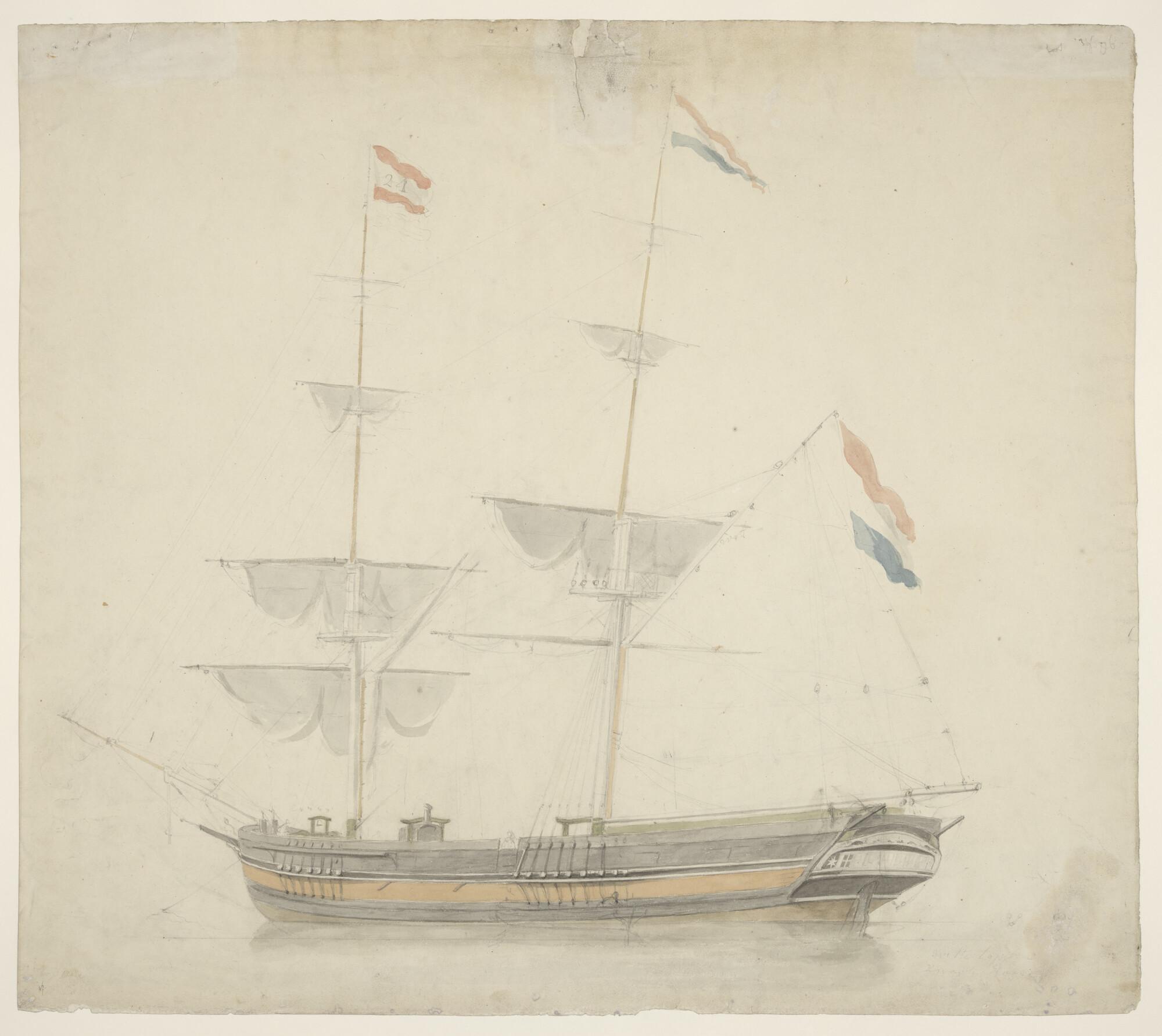 Paviljoenjacht en verso de Bataafse vlag