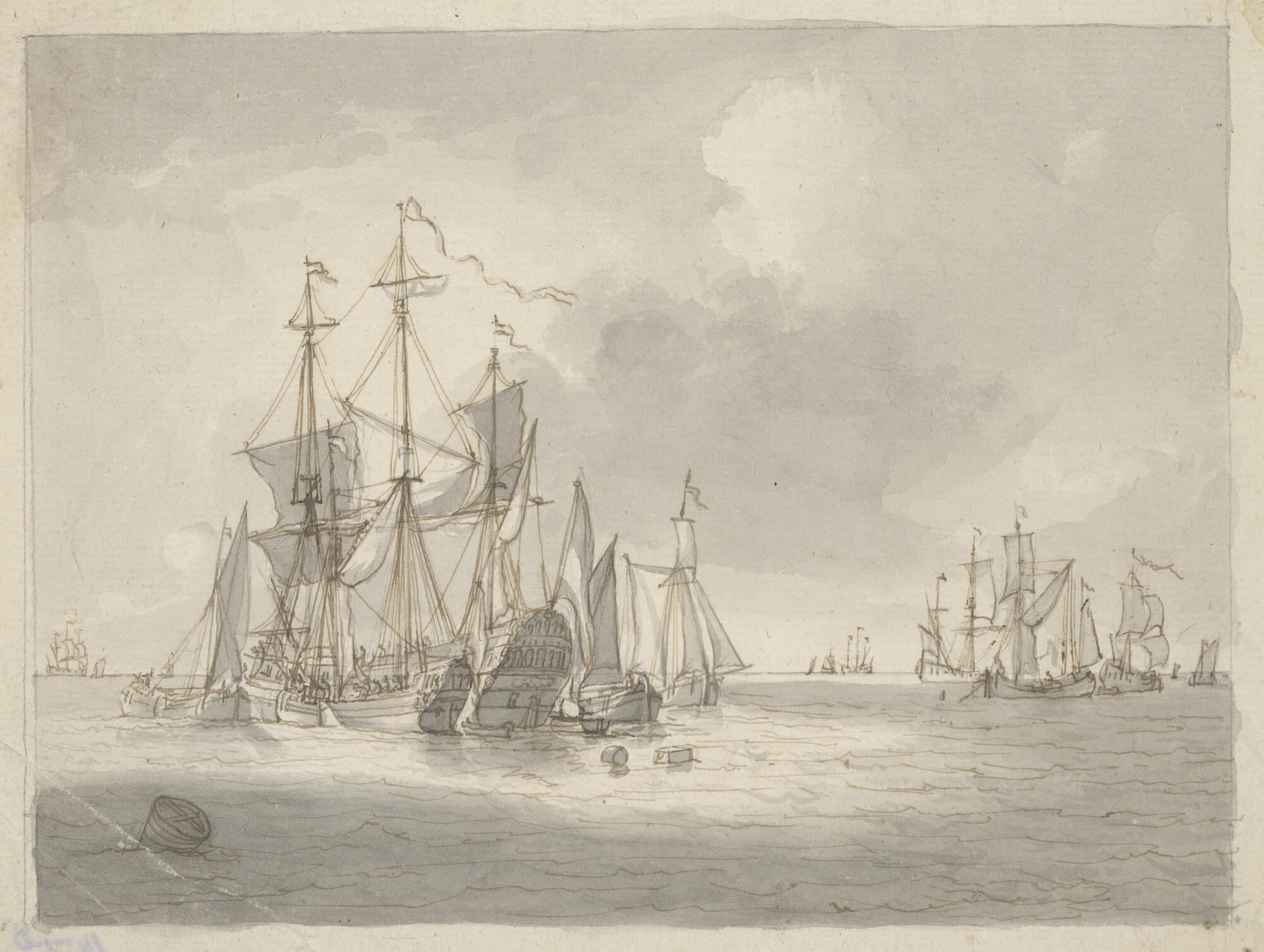 Scheepvaart op zeer kalme zee