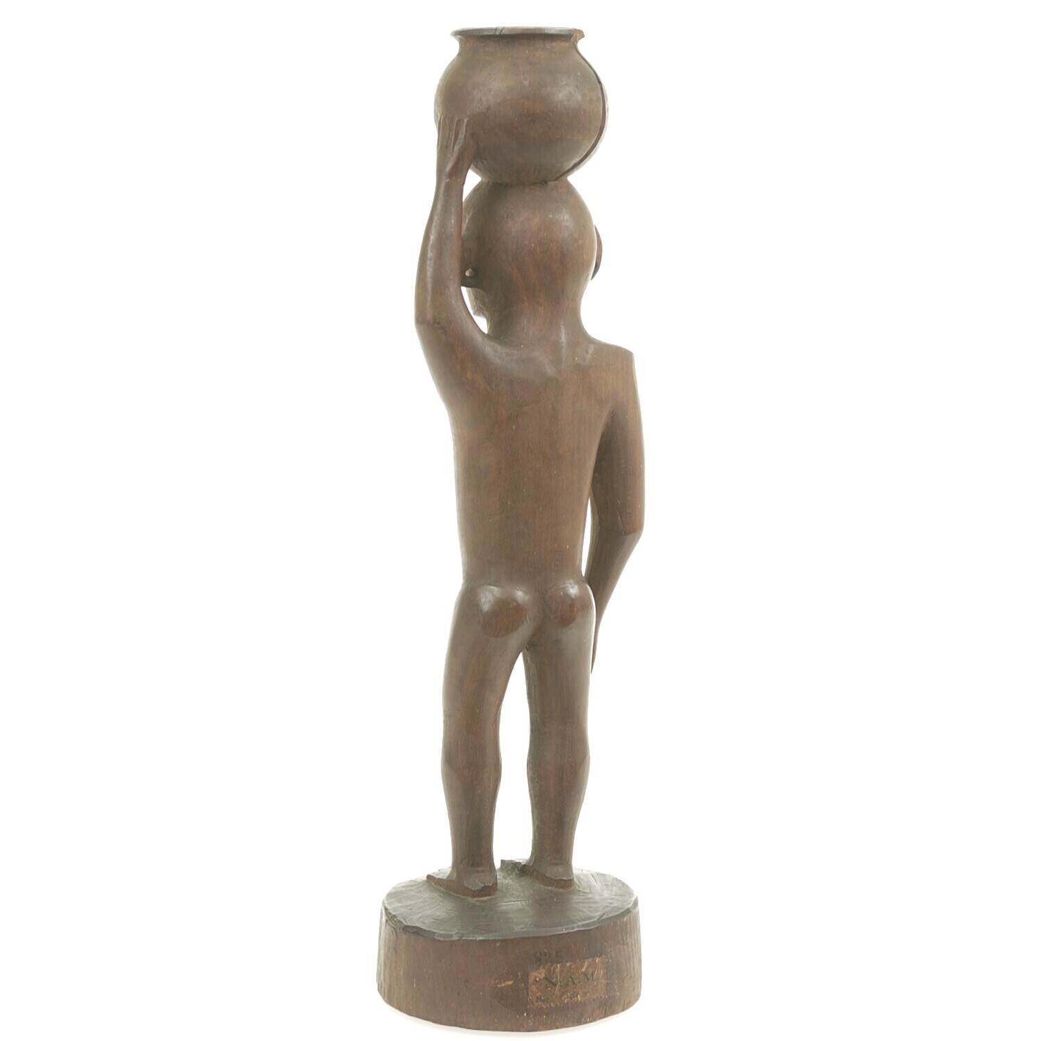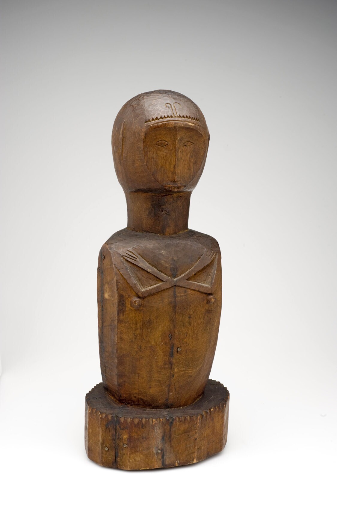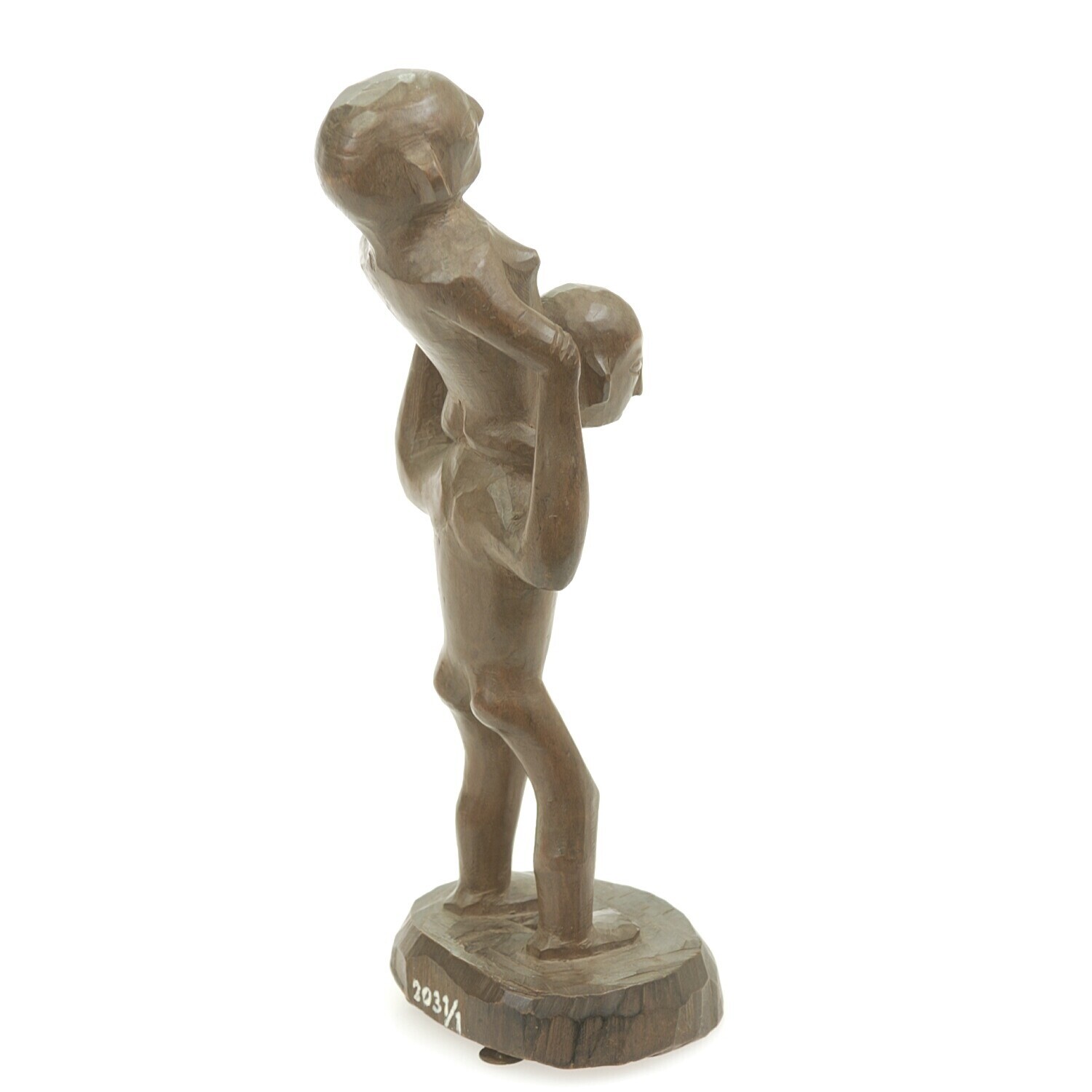 Houten beeldje, teko teko, gevelfiguur van een Maori...