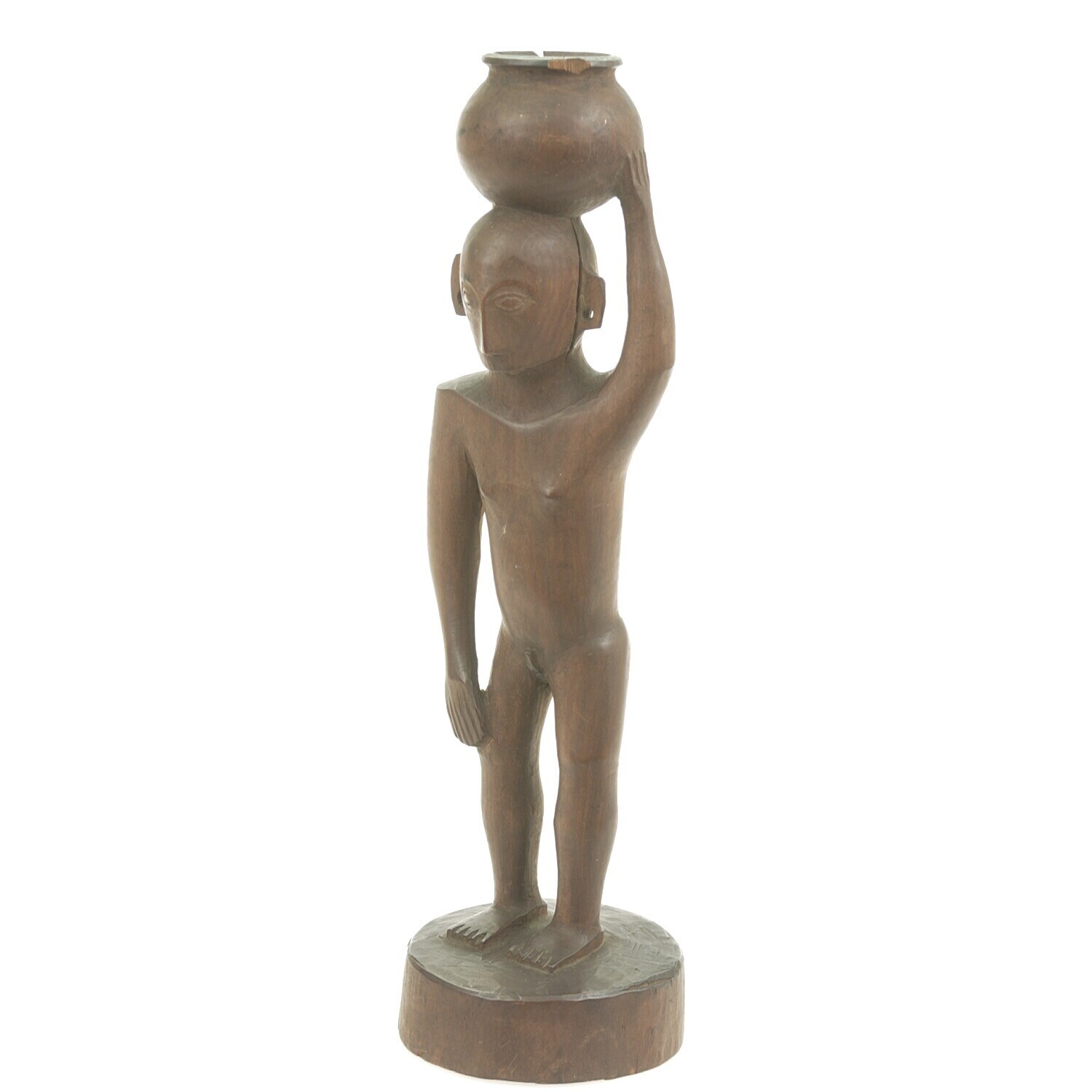 Houten beeldje, teko teko, gevelfiguur van een Maori...