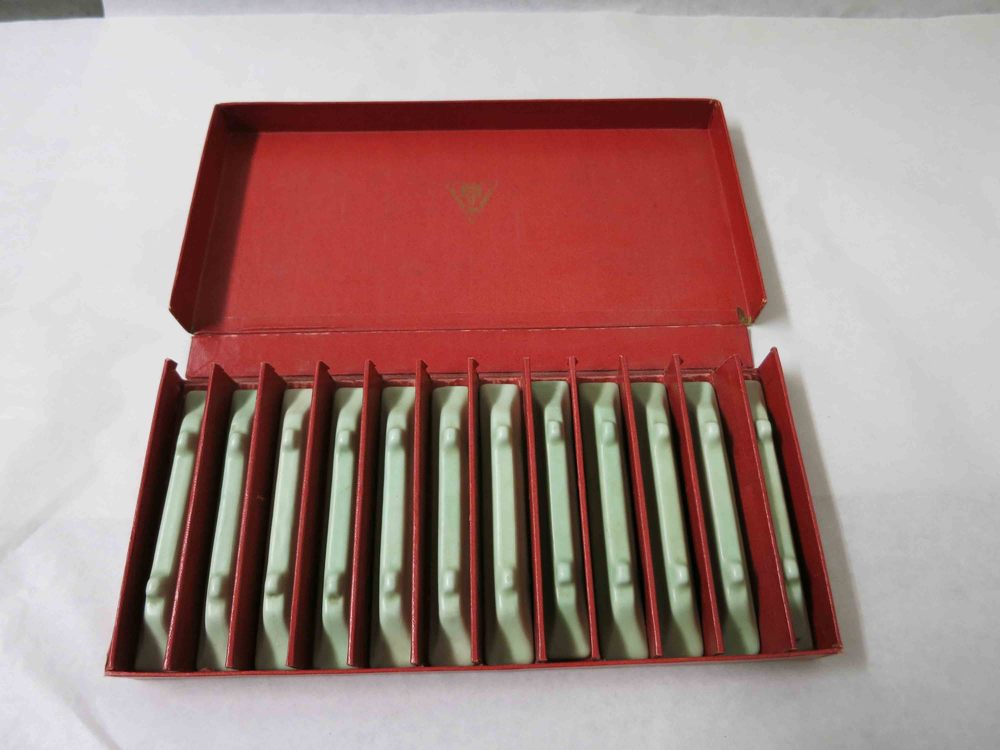 Twaalf messenleggers in doos