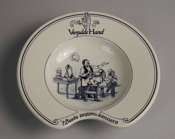 Scheerbekken, diep bord met in de rand een uitsparin...