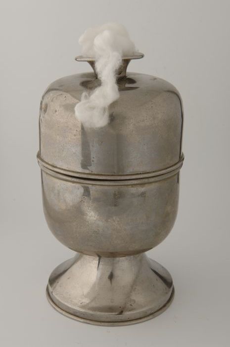 Metalen wattenpot van verchroomd koper, tweedelig op...