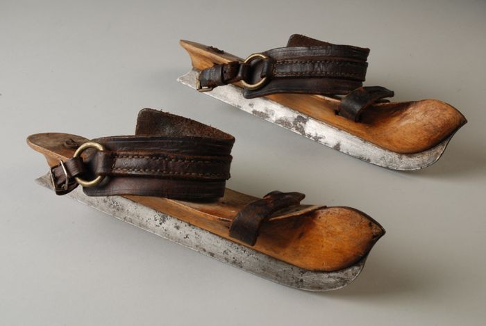 Paar met hout beklede halsschaatsen, Waddinxvener mo...