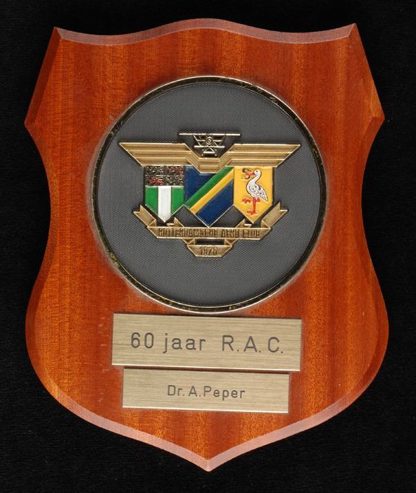 Plaquette, geschenk aan "Dr. A. Peper" van de "Rotte...