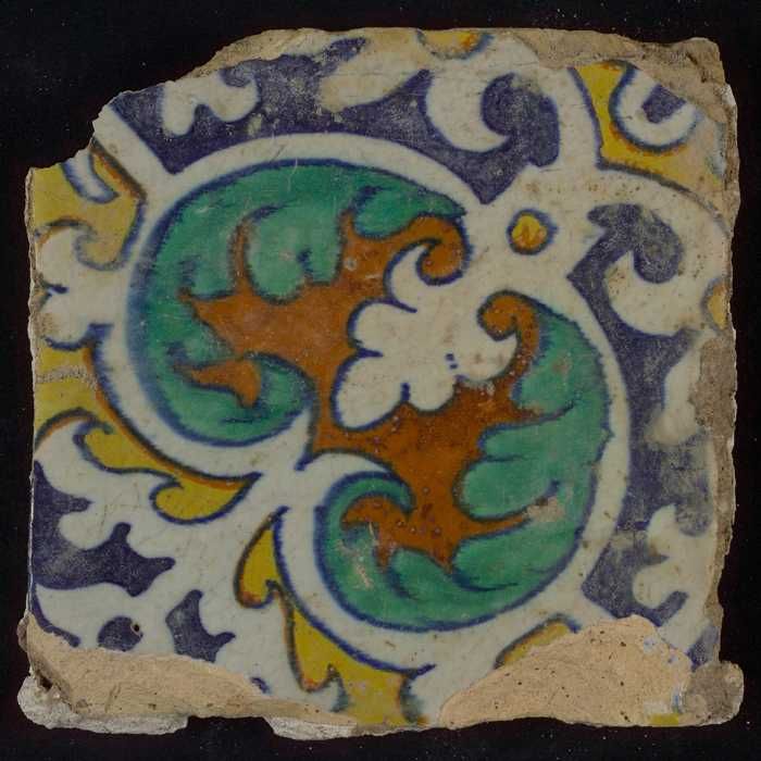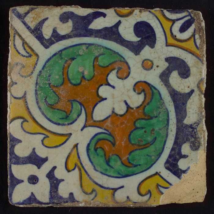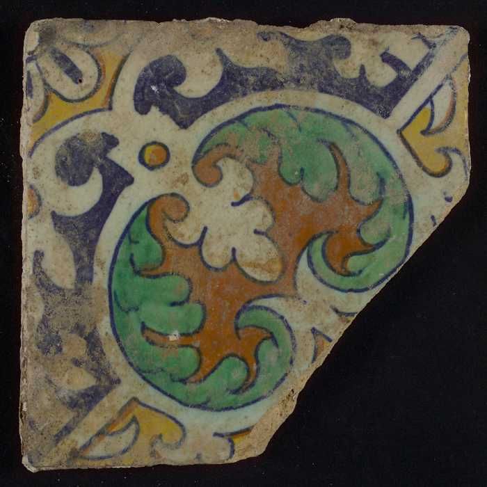 Ornamenttegel, centraal niervormige florale vorm, ho...