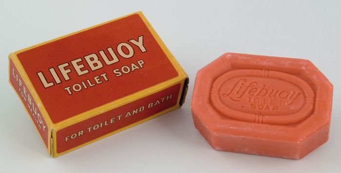 Pakje "Lifebuoy" toiletzeep, rood, geel en wit