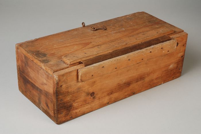 Houten kistje (keggendoosje) voor keggen, van een st...
