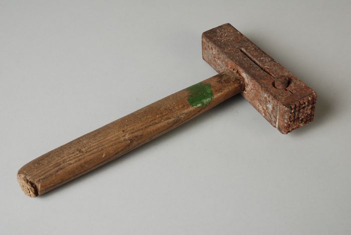 Rubberen kop van een hamer, gebruikt door steenhouwer