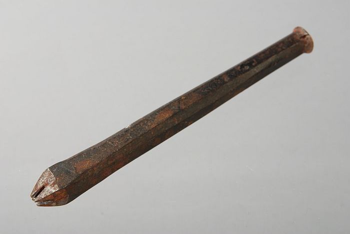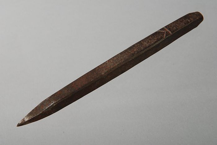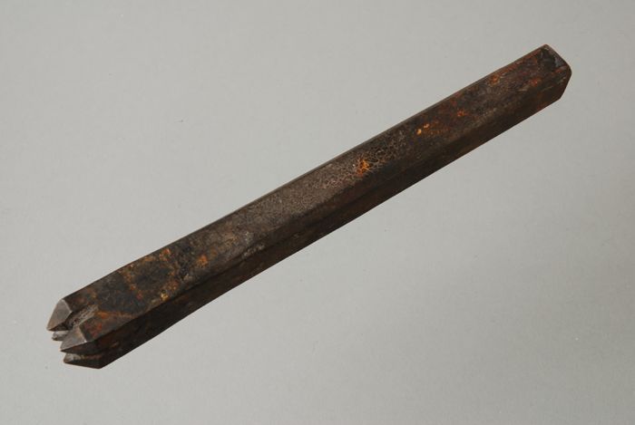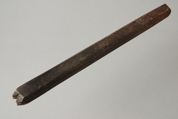 Holle ijzeren beitel, gereedschap van een steenhouwer