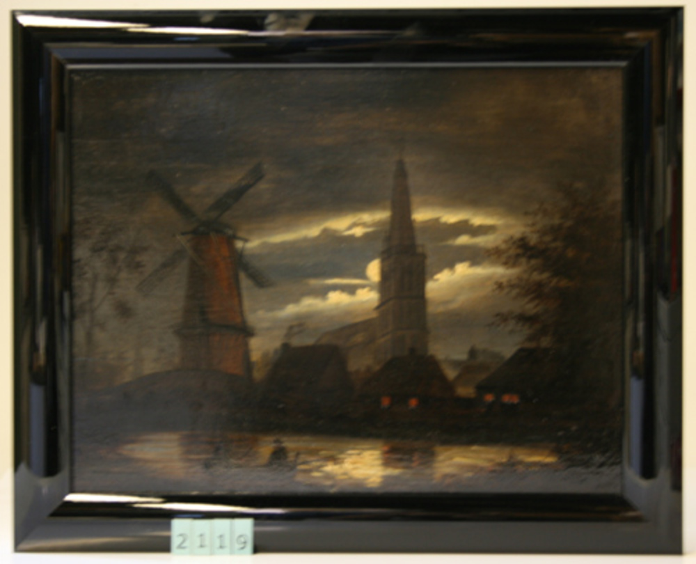Gezicht op Doesburg vanaf de IJssel bij volle maan m...