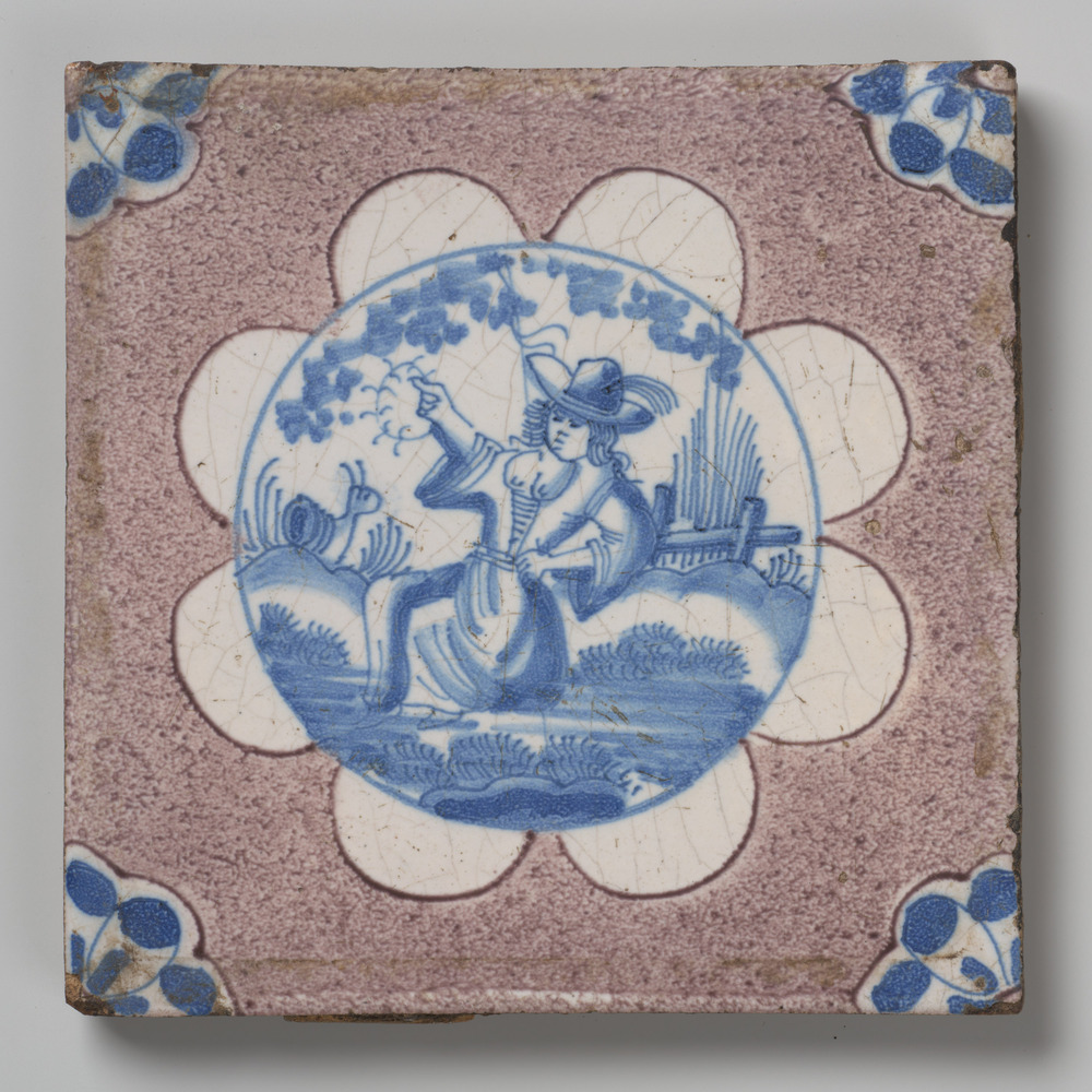 tegel van aardewerk met tinglazuur, voorstellende: m...