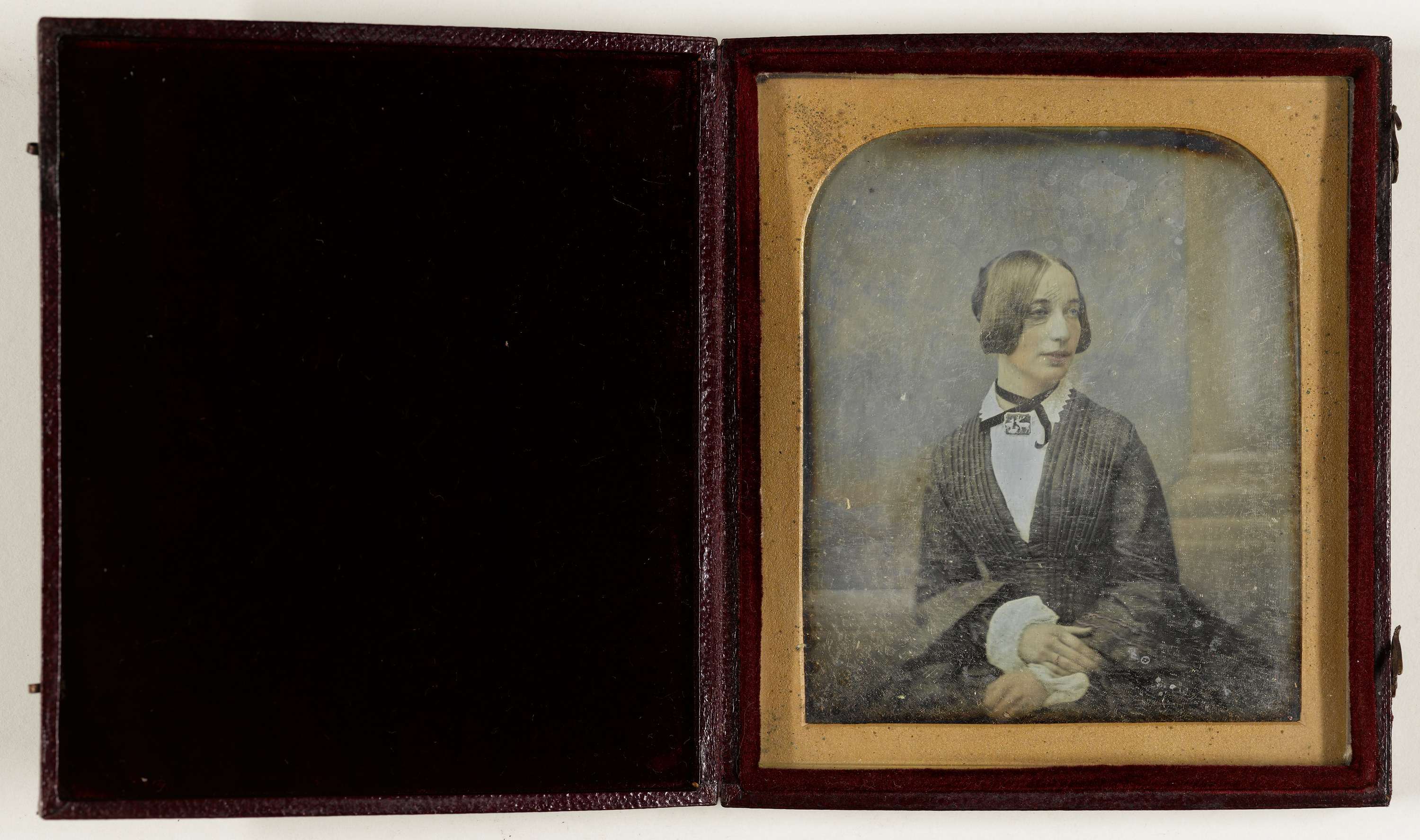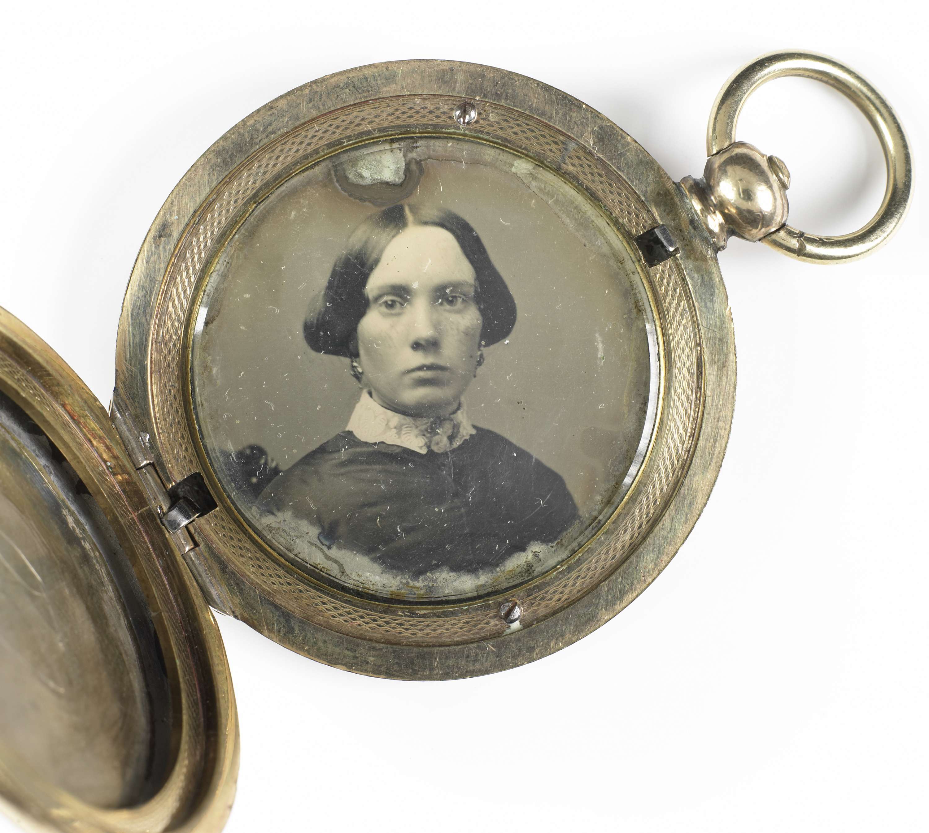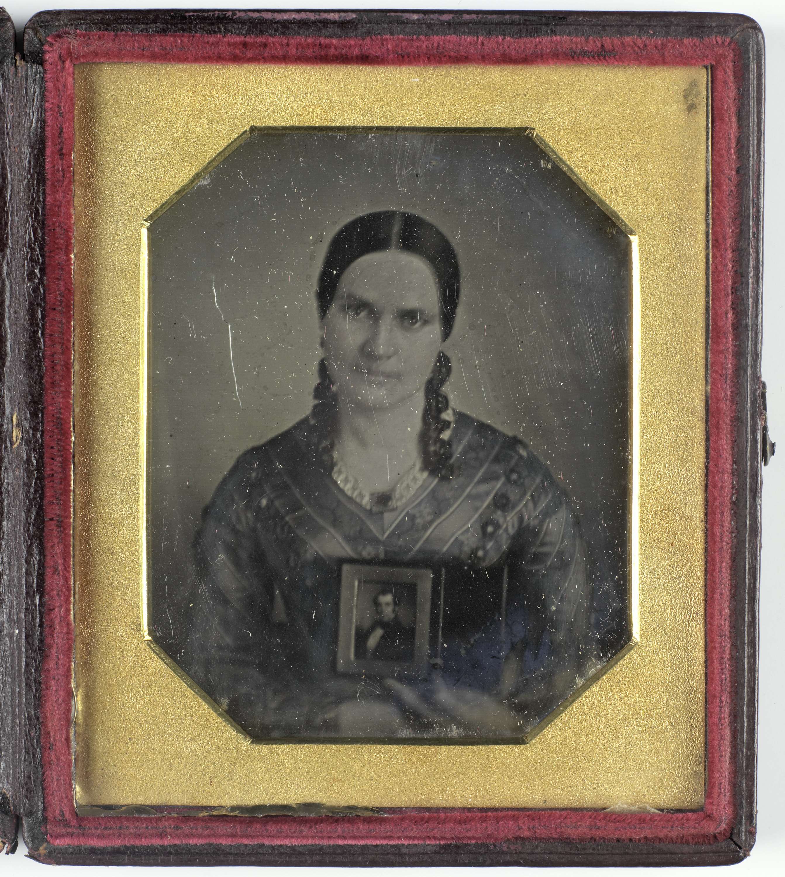 Portret van een jonge vrouw met daguerreotypie