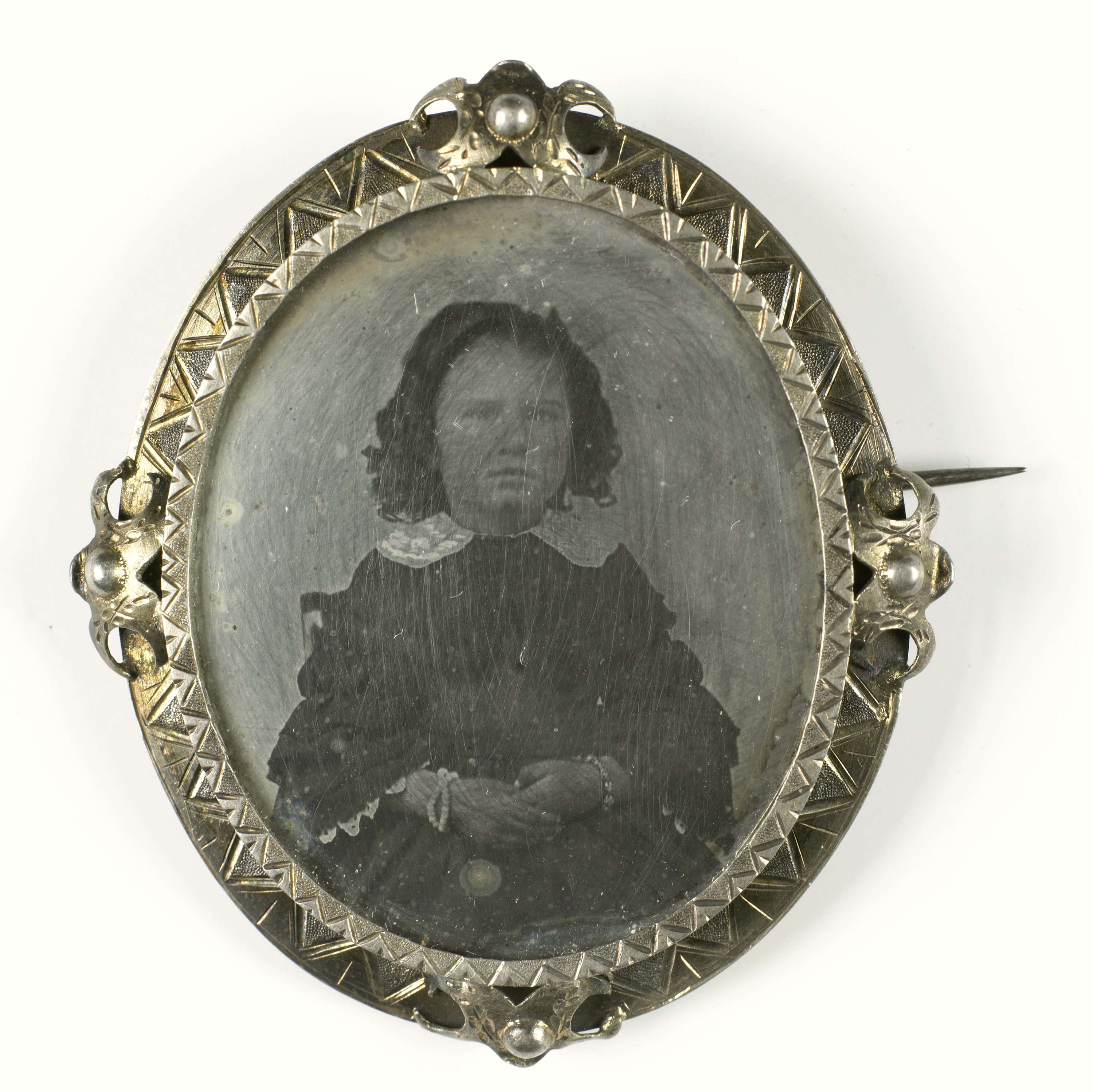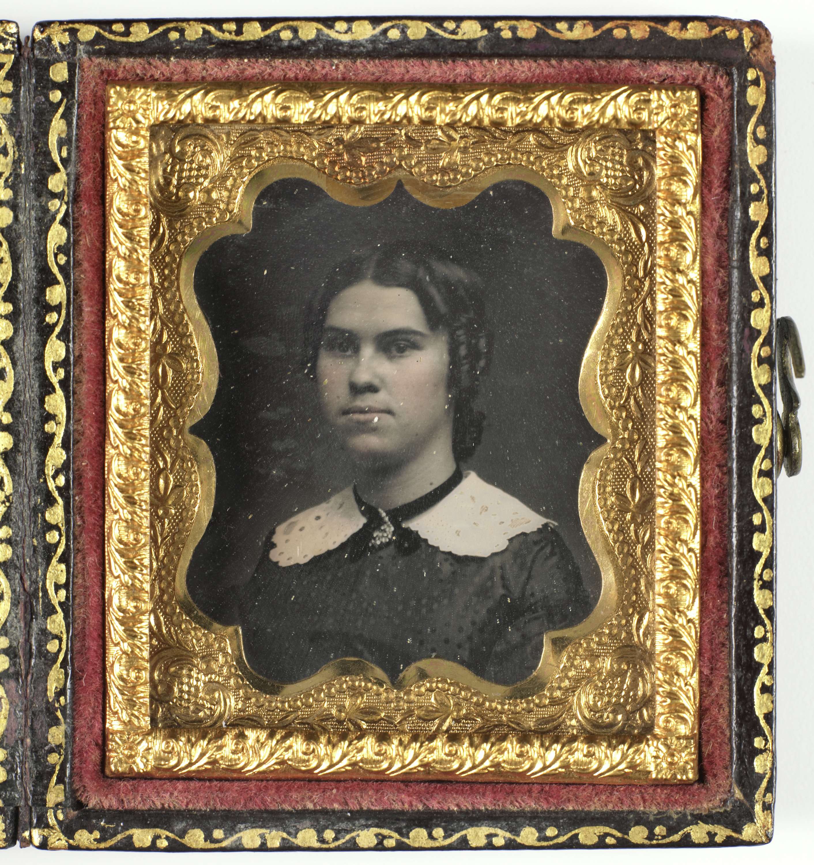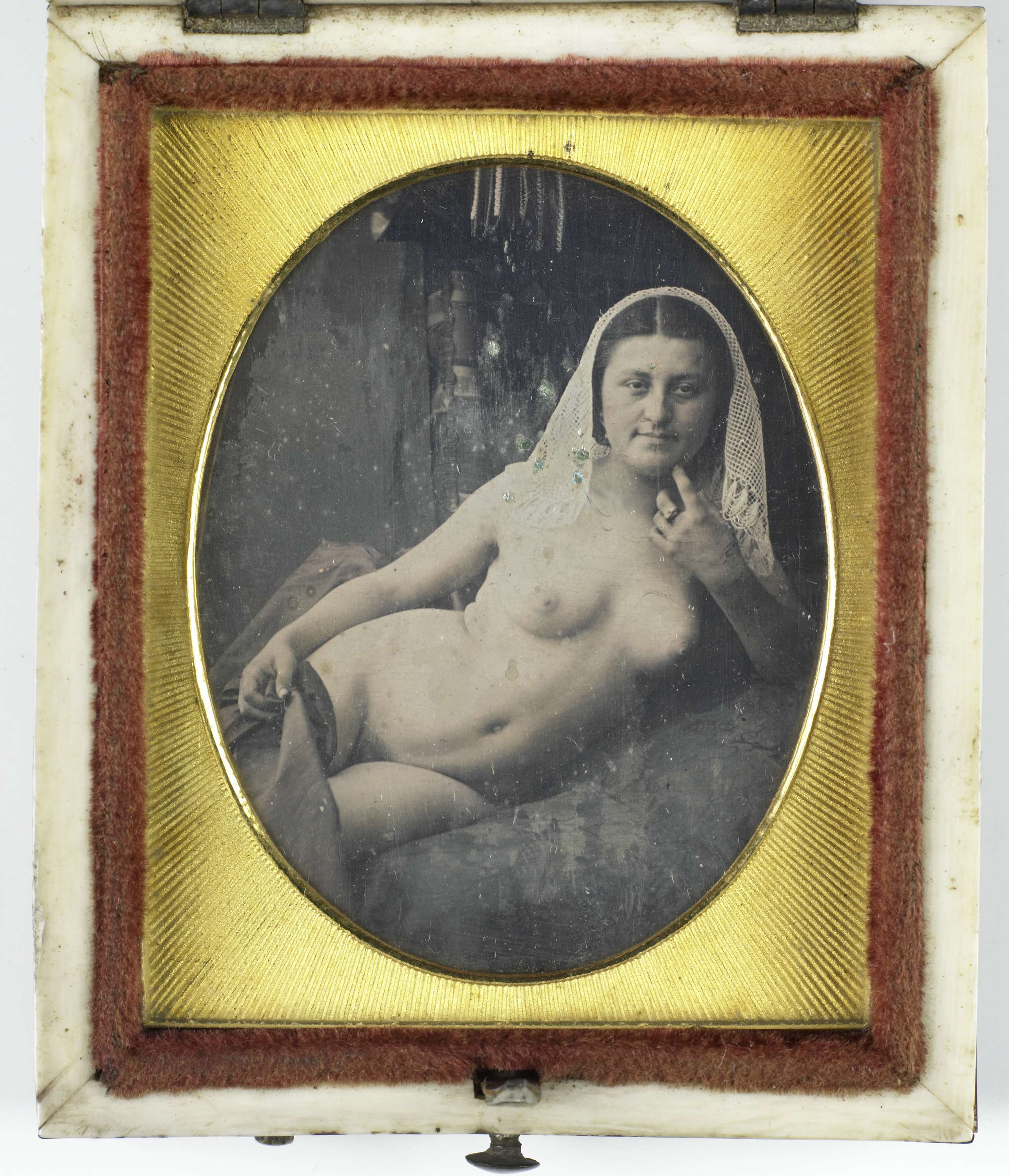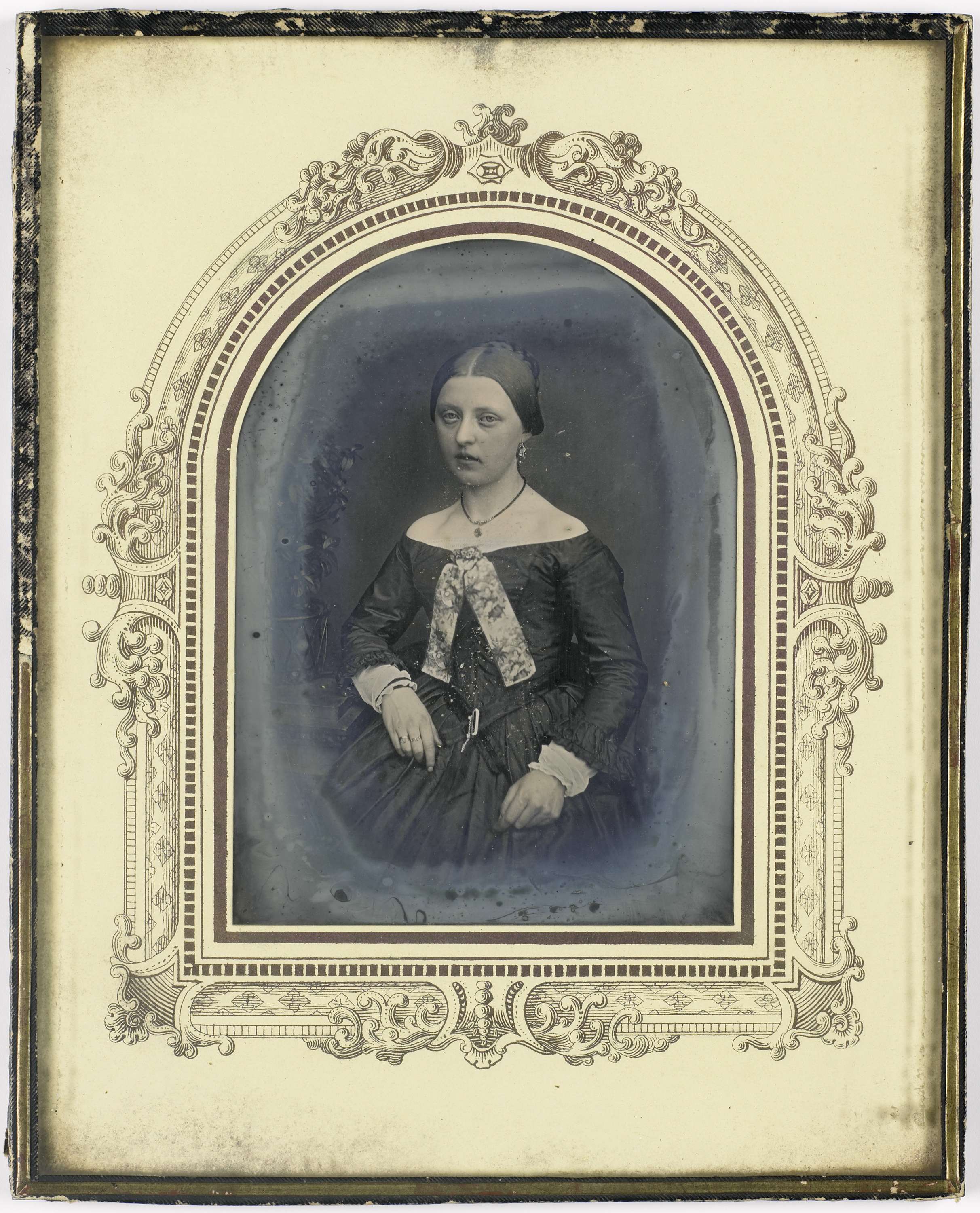 Portret van een jonge vrouw met daguerreotypie