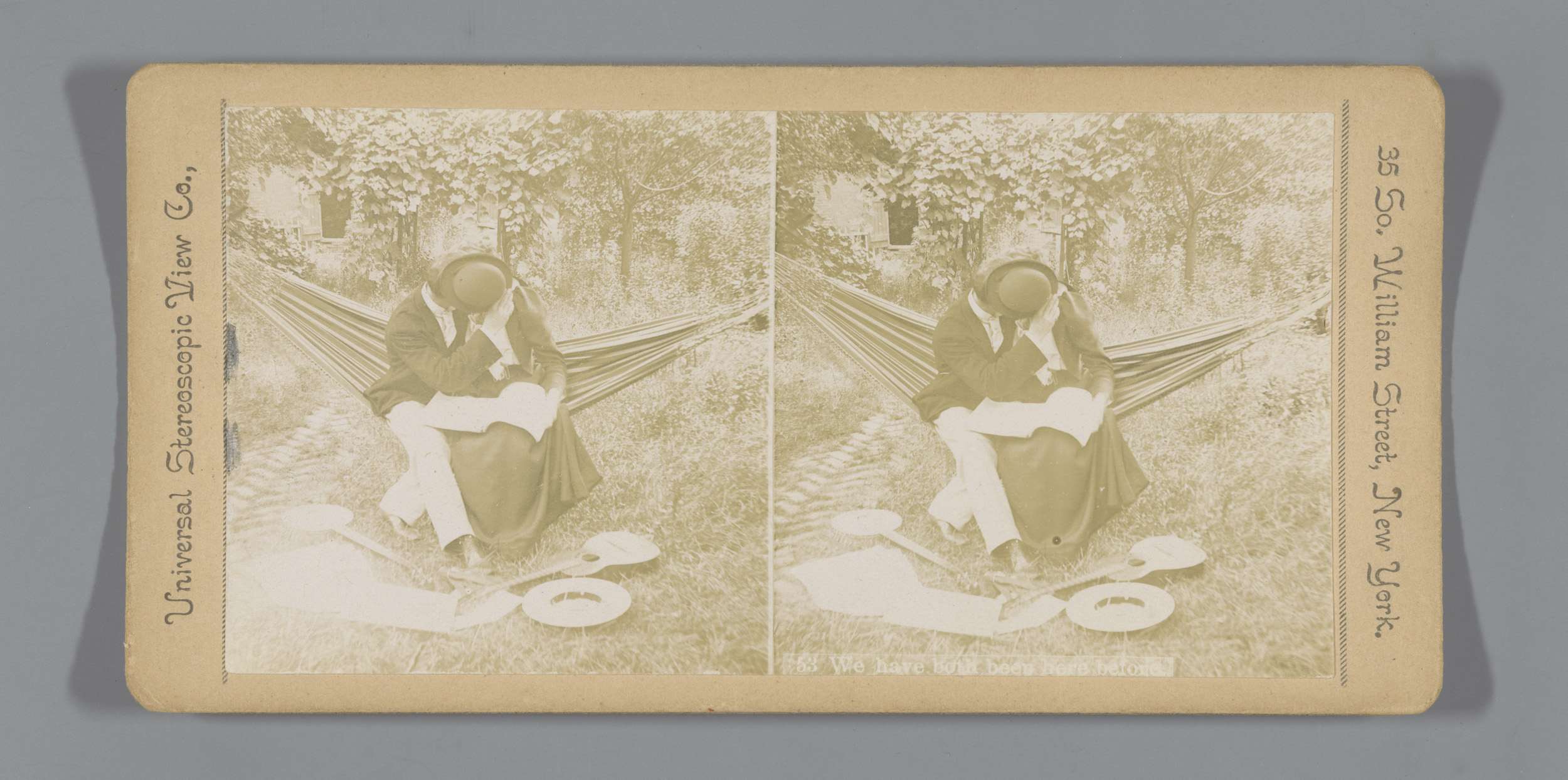Paar zittend in hangmat verscholen achter hoed
