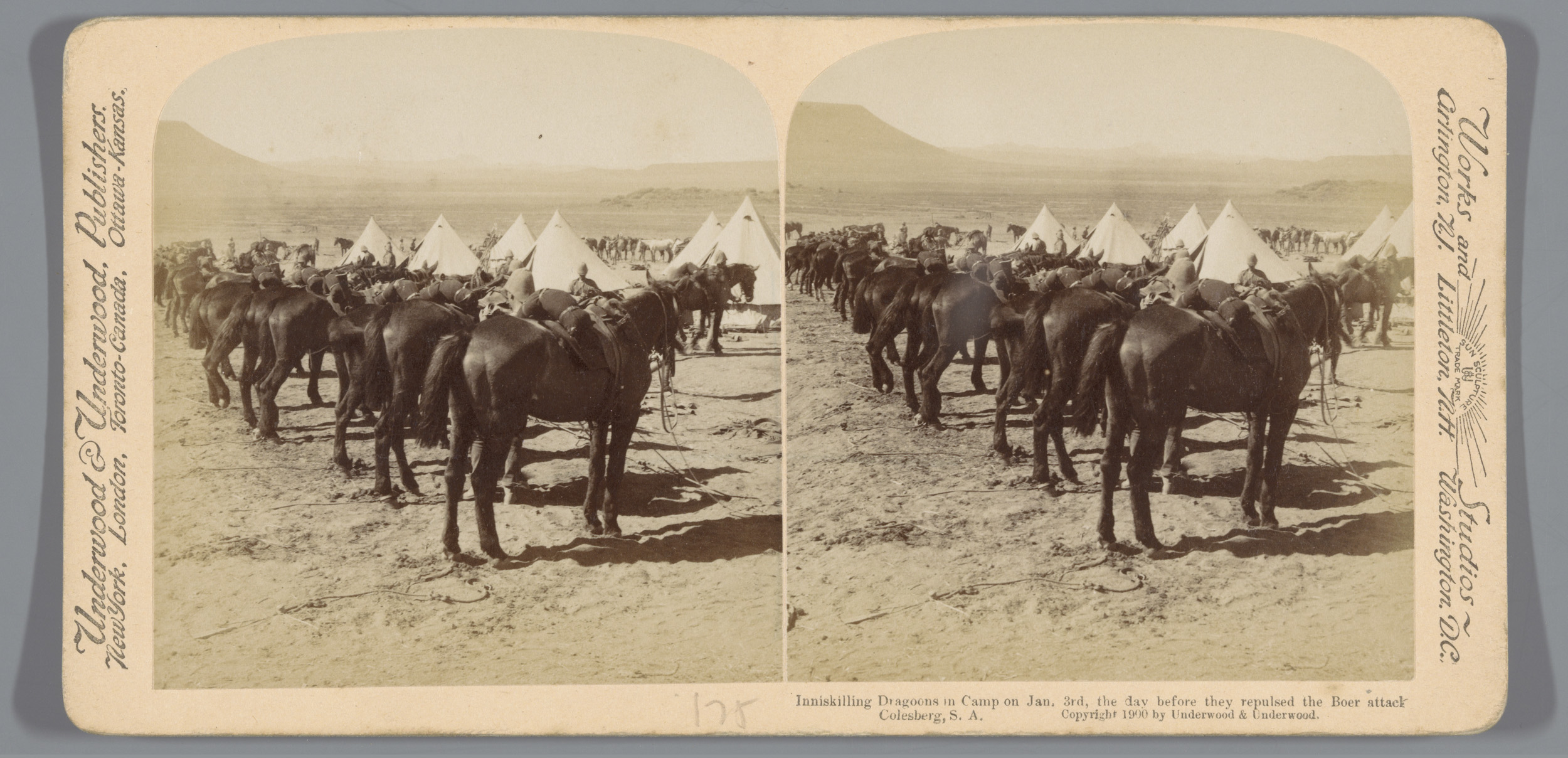 Kamp met paarden van vermoedelijk het Brits leger in...