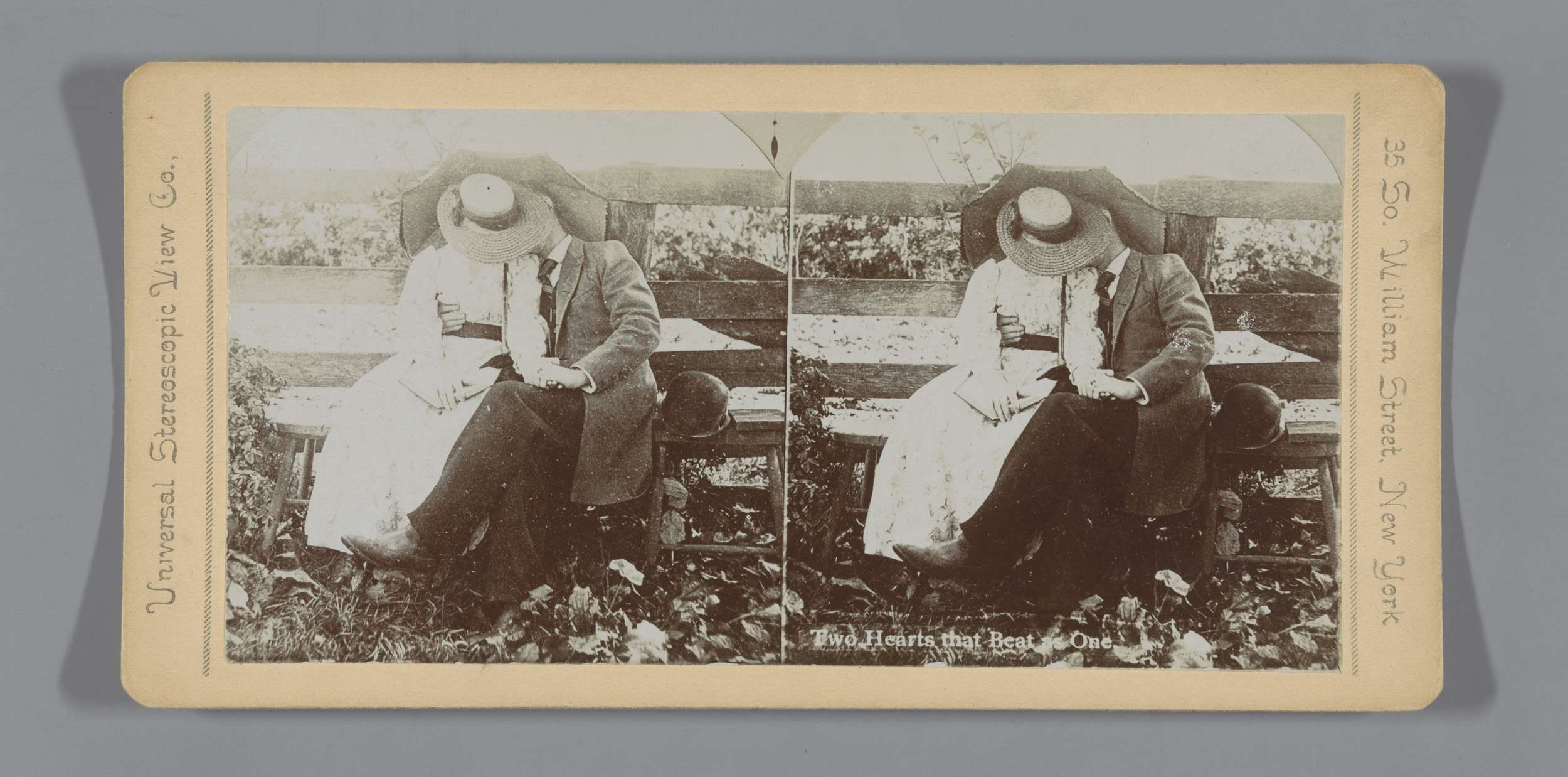 Paar verscholen achter hoed en paraplu
