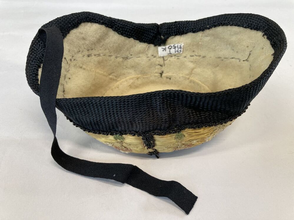 Muts van wit linnen met zwarte geborduurde bloemfigu...
