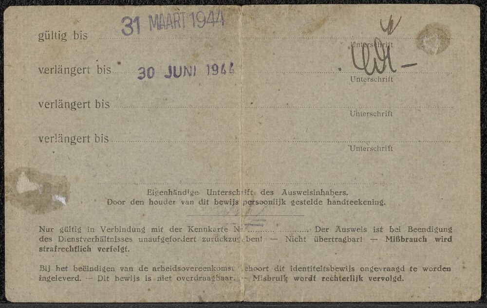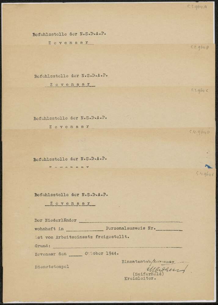 Vrijstelling Arbeitseinsatz Zevenaar, oktober 1944