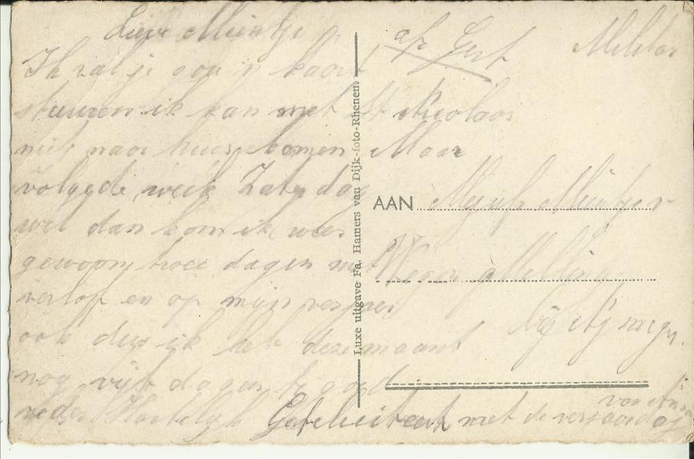Brief van Annie in Rotterdam aan Gé Verbeek in Waten...