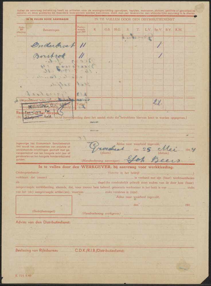Aanvraag voor extra textielgoederen, Groesbeek