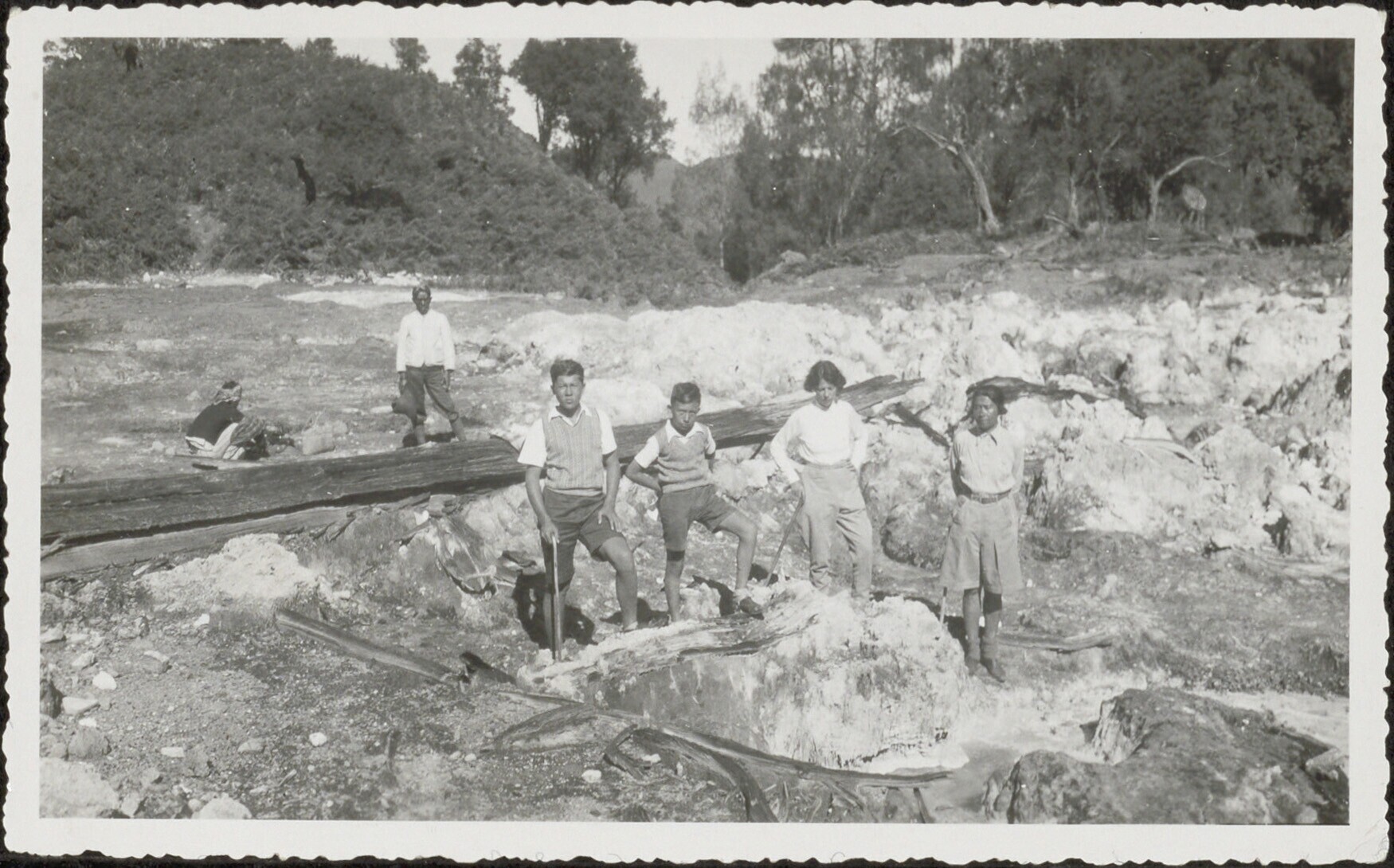 Kinderen bij een brug over de Kali Bening bij Magelang