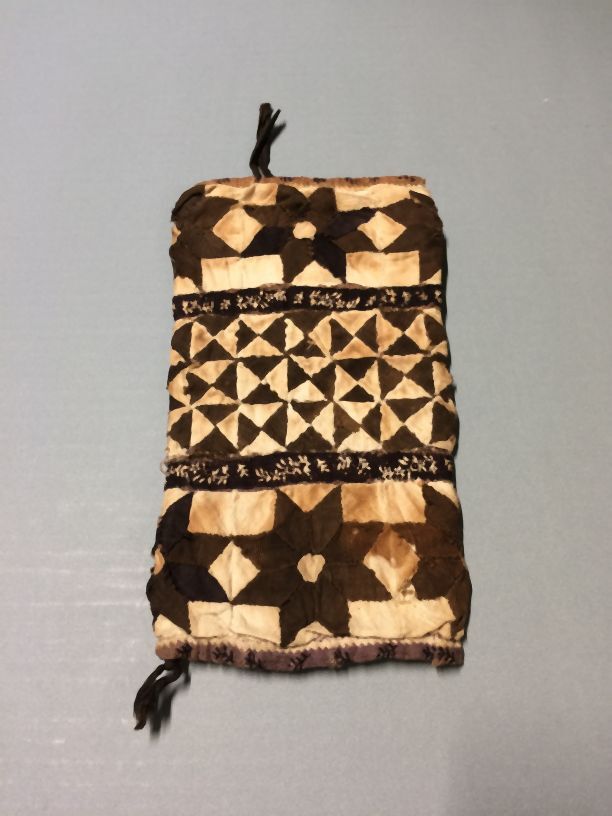 Driekantige witte doek bezaaid met getamboereerde kl...