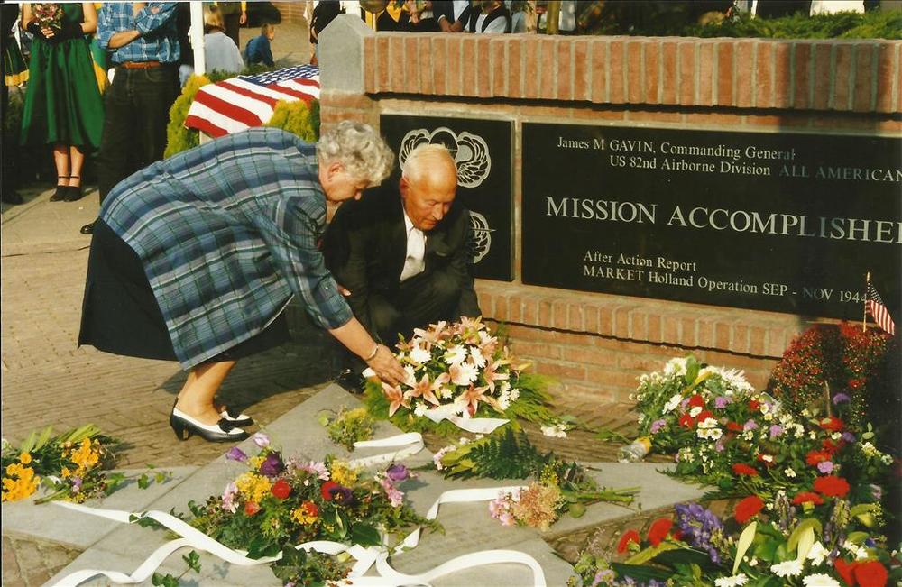bloemen bij 'Mission Accomplished' monument