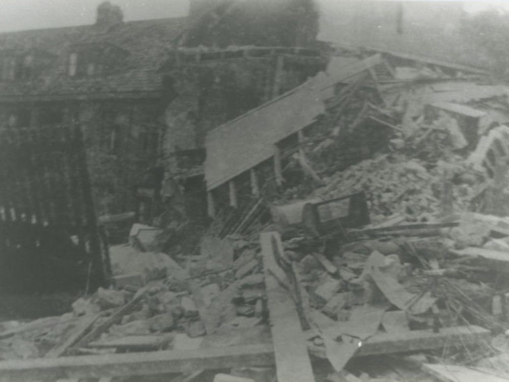 Foto van de puinhoop van huis na de bominslag in Ams...