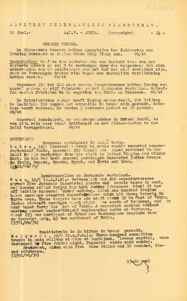 Algemeen Nederlandsch Persbureau, mededelingen, 27 m...