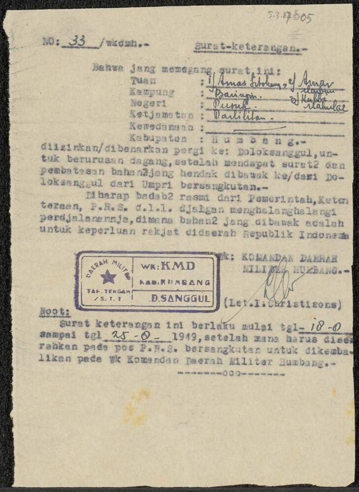 Getypte notitie 33 in het maleis van I. Christisons ...