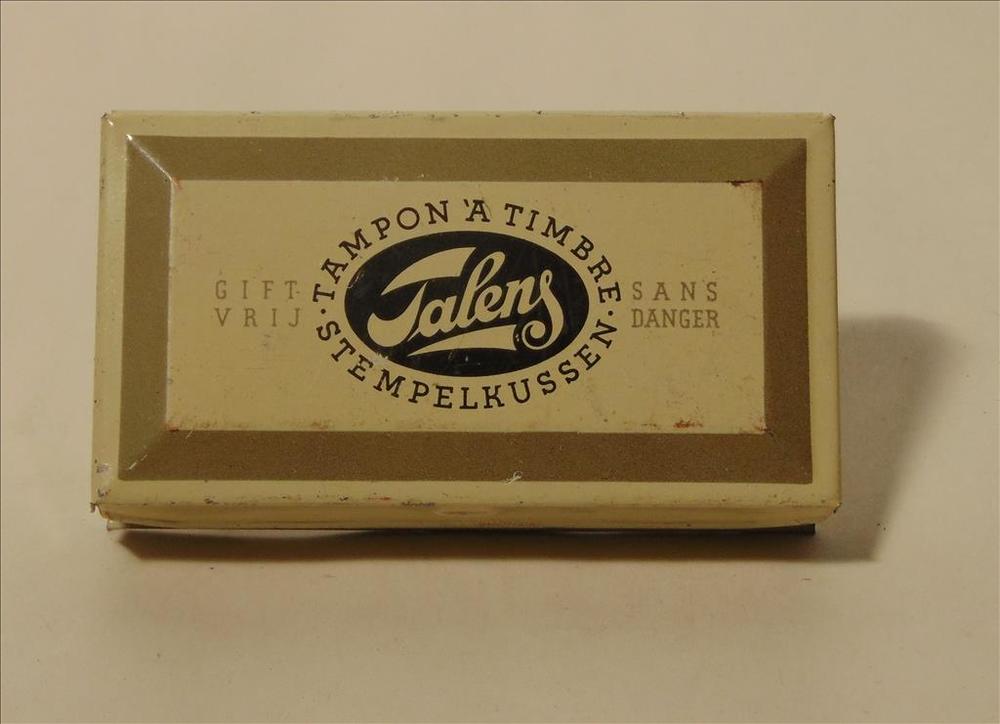 stempeldoosje van metaal met daarin een inktkussen