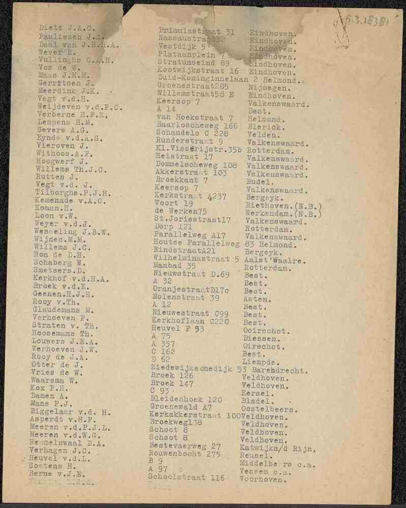 Lijst met namen en adressen van mannen die het B.S. ...