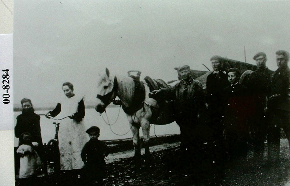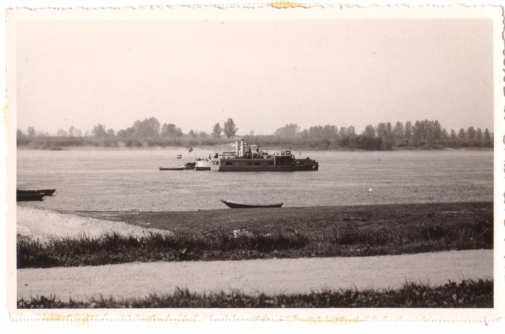 Zwart-wit foto van de Boterdijk te Lobith op een kou...