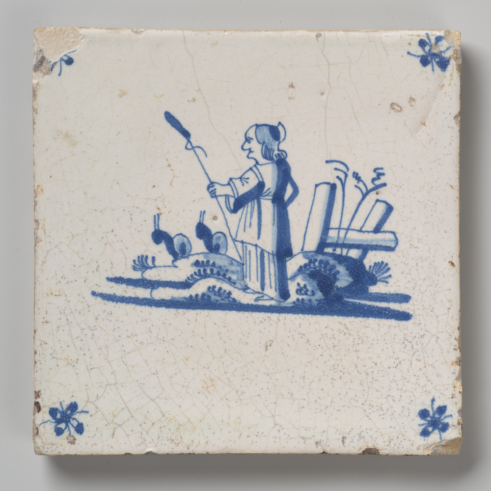 Tegeltableau in sectieltechniek, voorstellende: vrou...