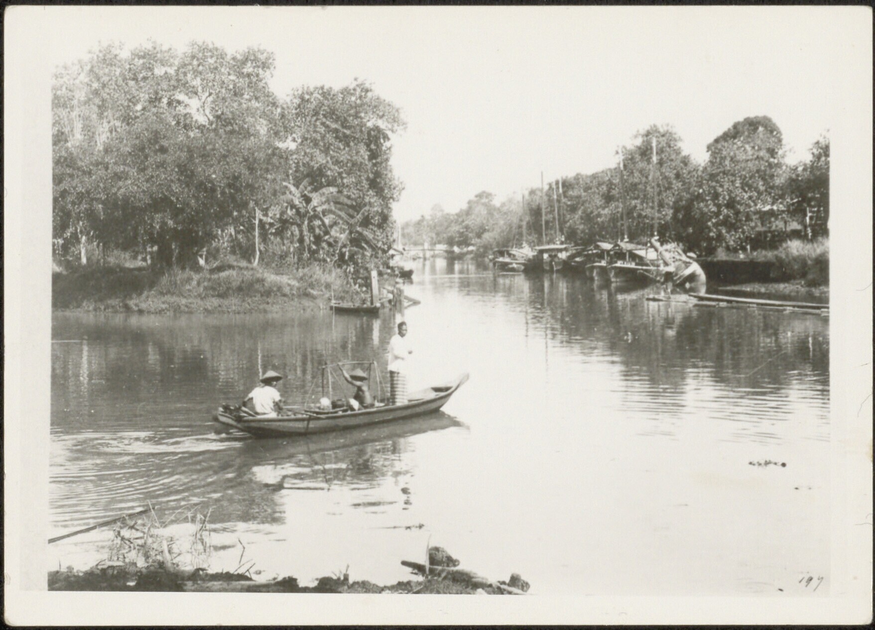 Kanaal in de benlenstad van Batavia, uitmondend in d...