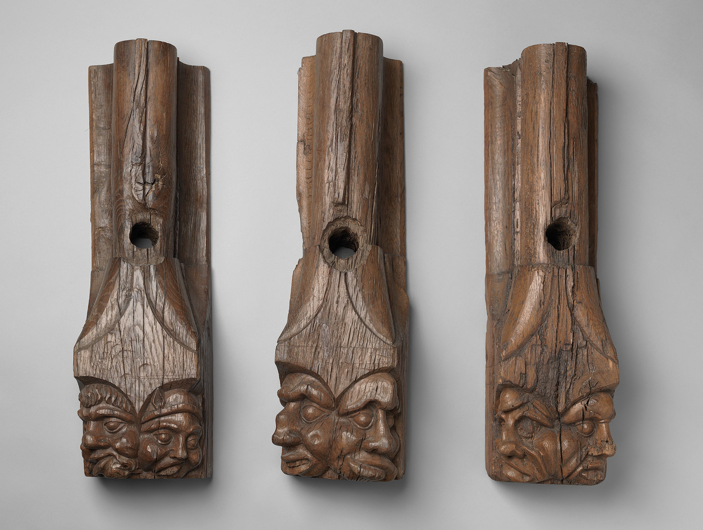 Drie muurstijlen met manskoppen
