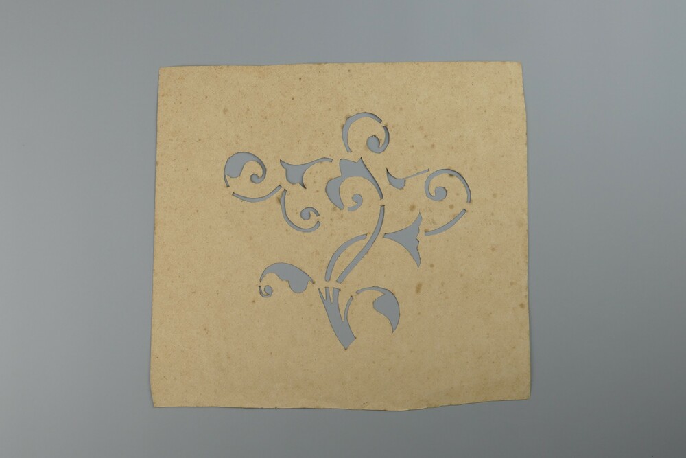 Sjabloon in papier met uitsnede van floraal motief.