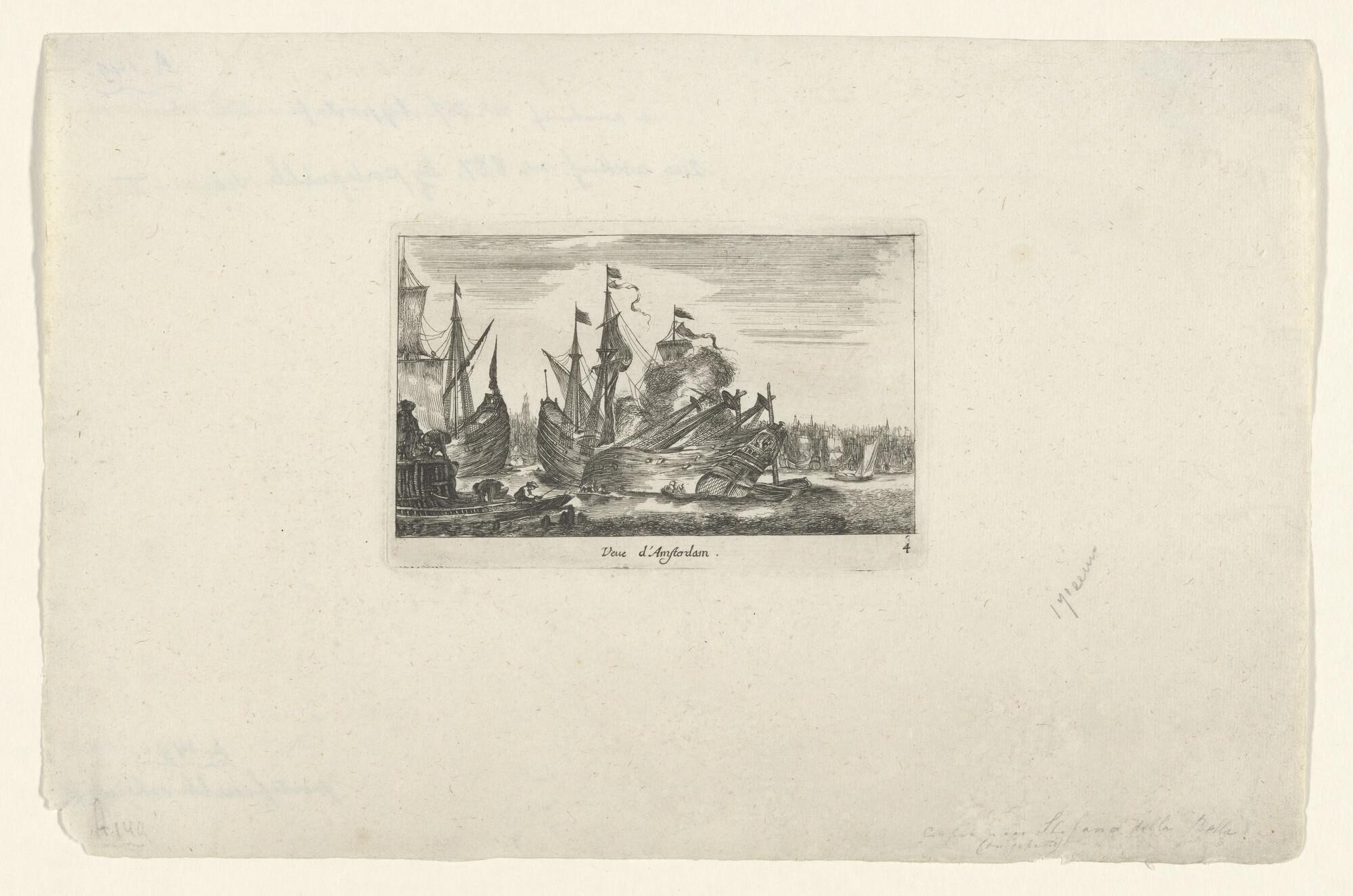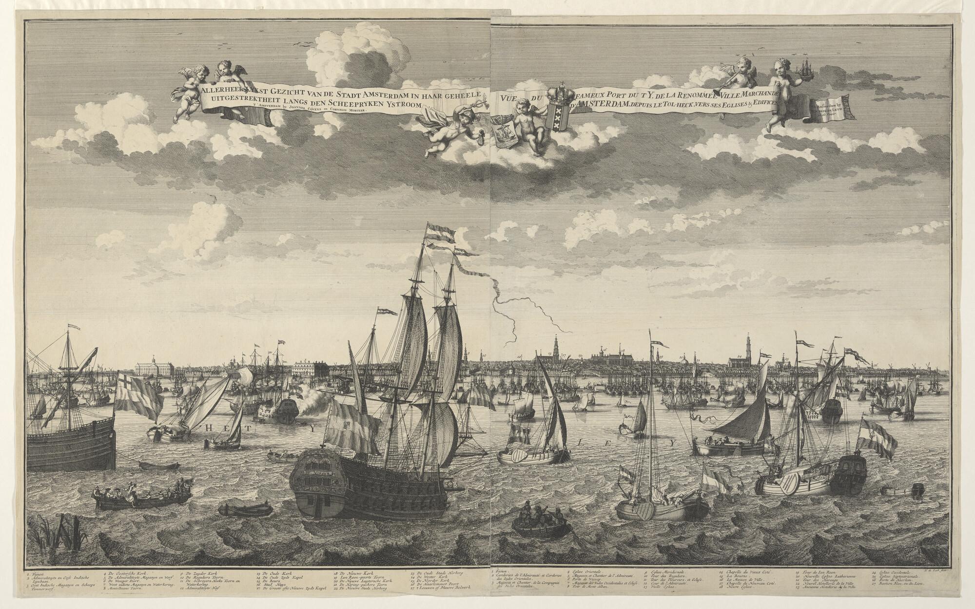 Gezicht op de haven van Amsterdam met in het midden ...